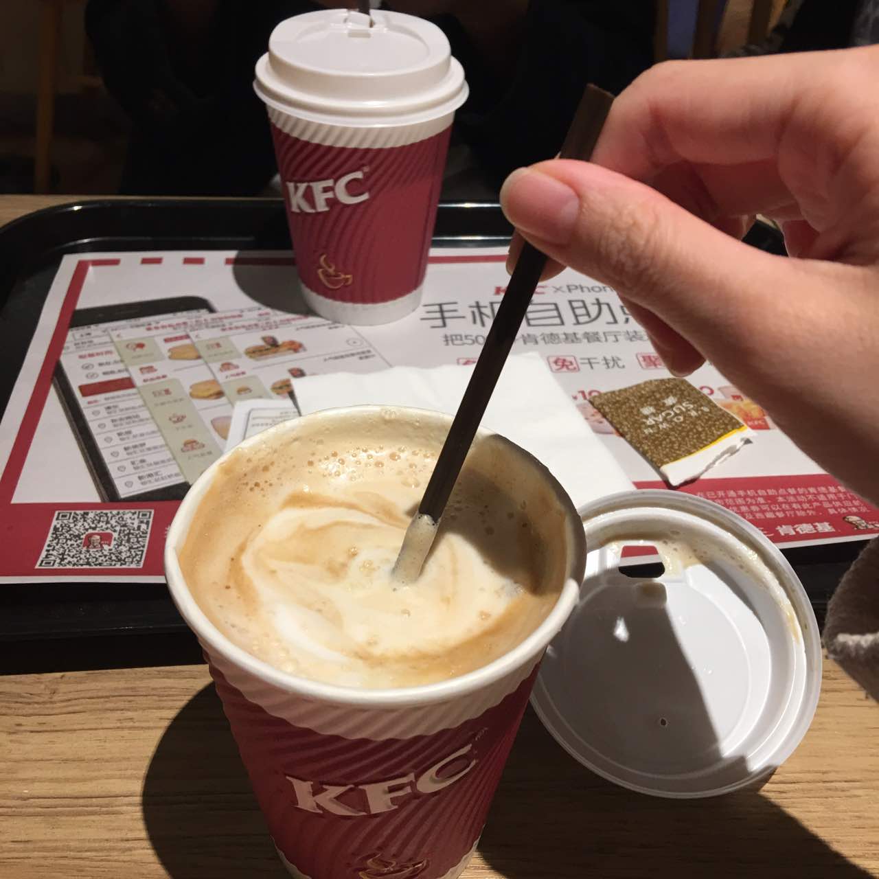 网友2017-02-15来自珠海明珠广场这边的肯德基拿铁coffee☕️在大冷天来一杯真的好暖心呢来自珠海明珠广场这边的肯德基拿铁coffee☕️在大冷天来一杯真的好暖心呢!本来鼻子有点塞塞的 喝下去这杯热腾腾的拿铁 整个人都好了