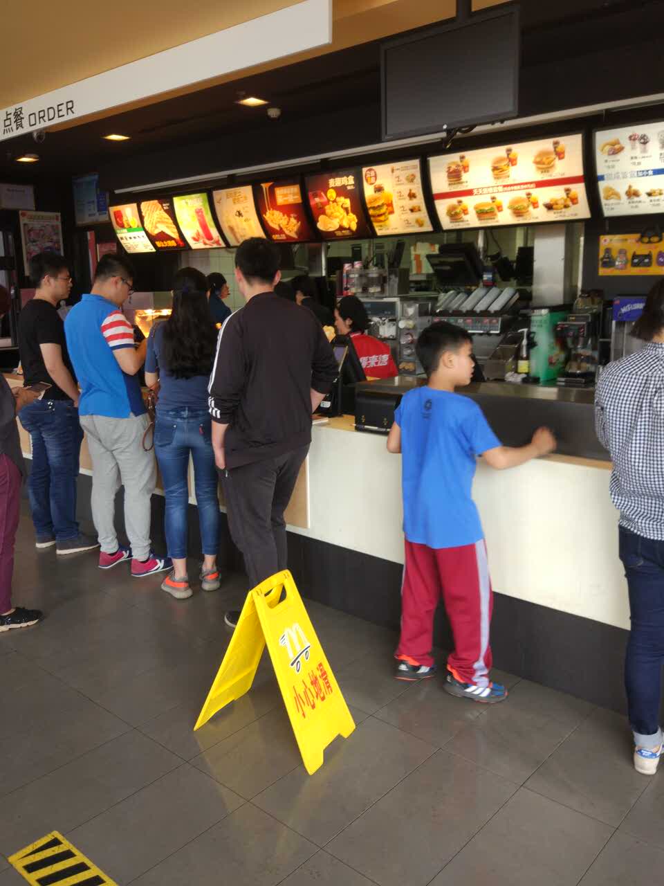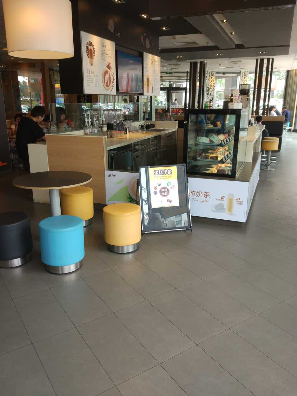 场地很大,室内室外都可以就餐。咖啡吧、儿童乐园和智能点餐屏都有配,设施相当完善。