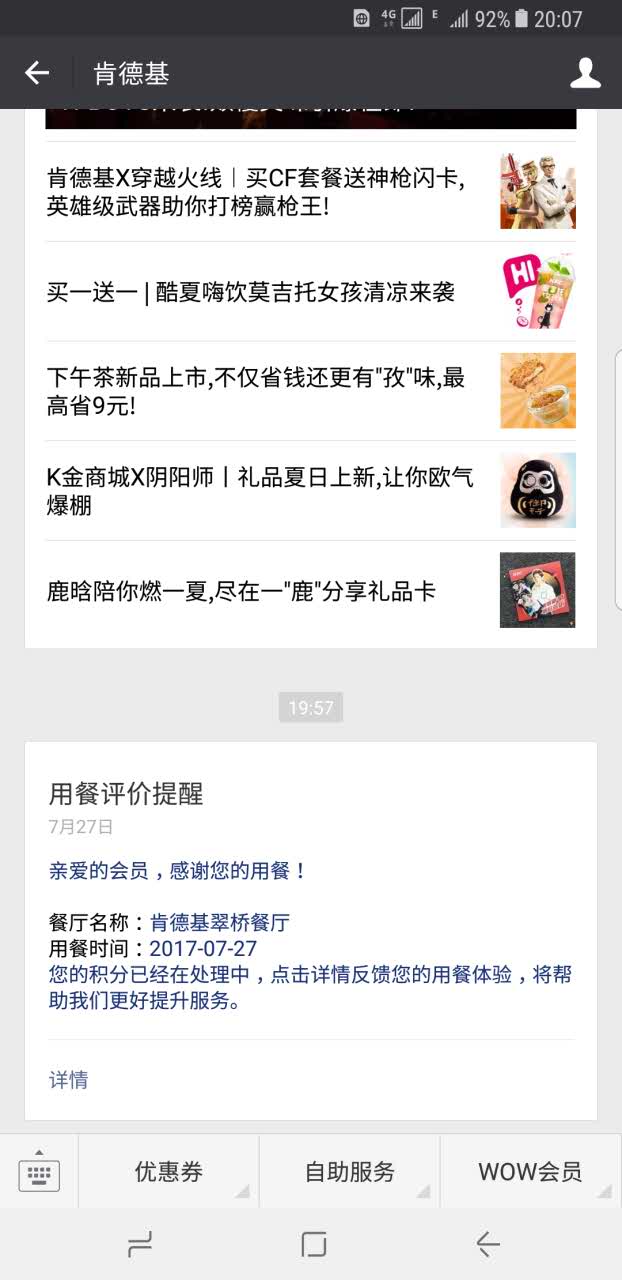 方便,出门不用带现金,肯德基的种类也是越来越多,希望以后可以多出些优惠
