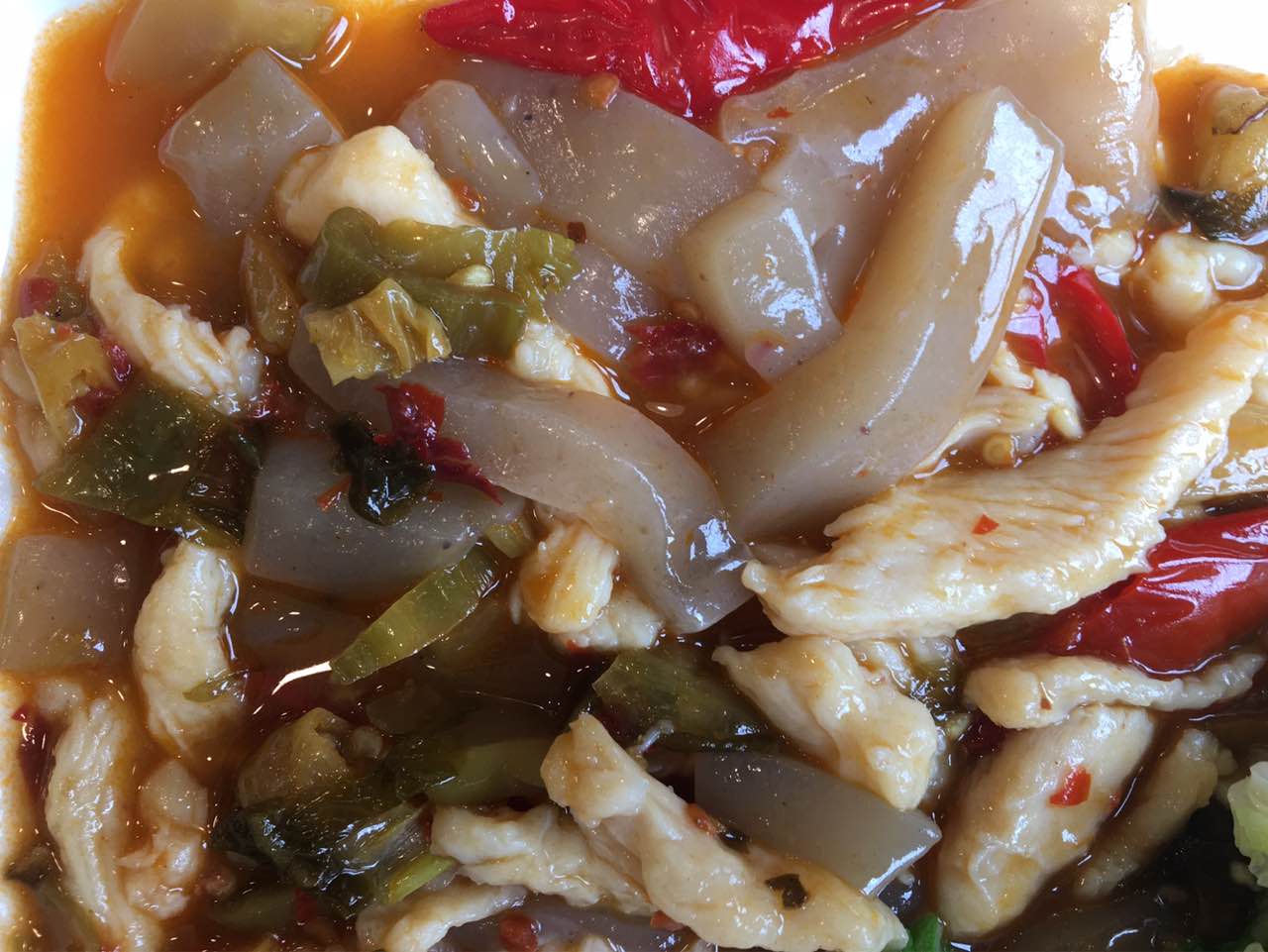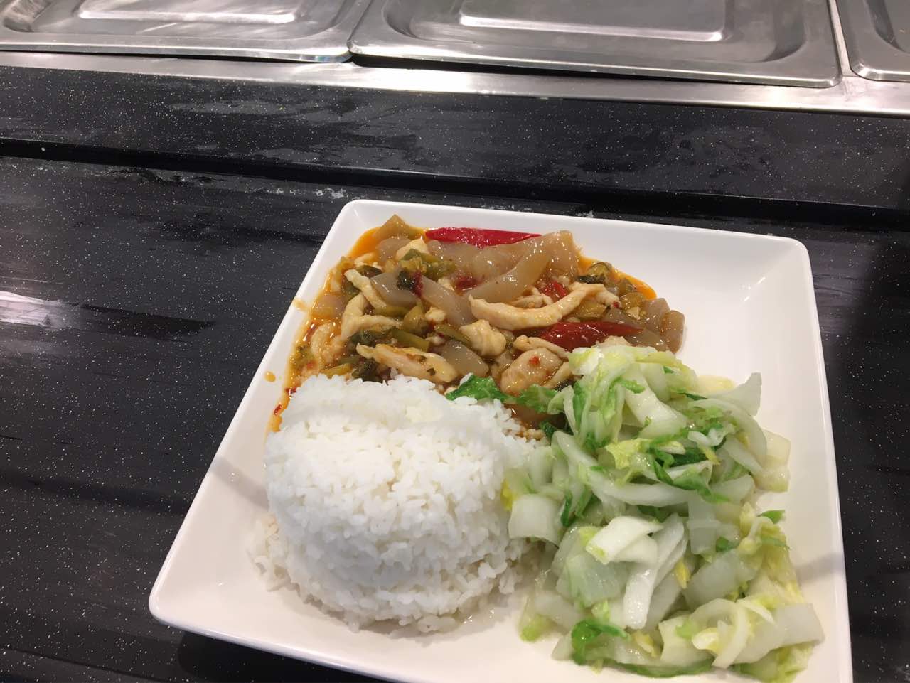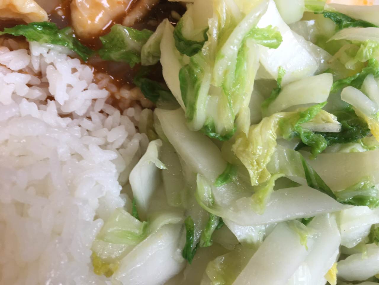 魔芋炒鸡丝味道不错,酸菜口味的,开胃!炒白菜口感硬,像不太熟,而且有点怎么会是苦的?
