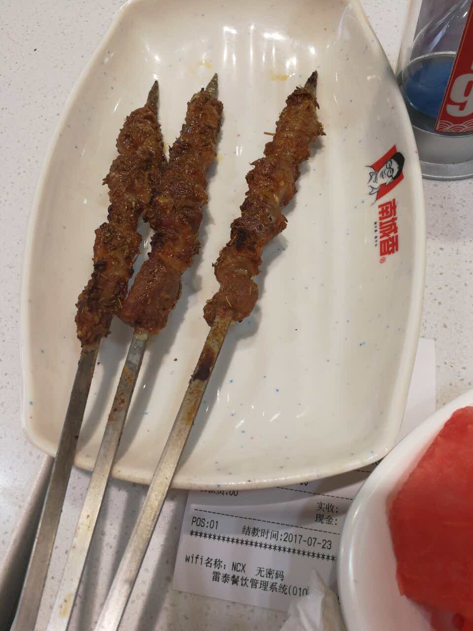 位置出地铁,味道不错烤串,水果和小菜免费!干净卫生!棒棒哒!推荐酸菜鱼,特别下饭!