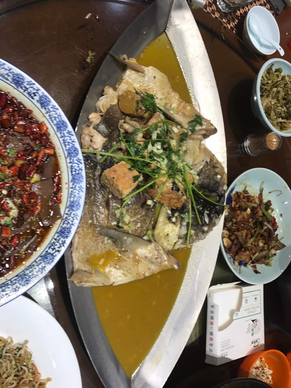 鱼肉不新鲜,服务态度非常差!!!!159.8一份的胖头鱼头,炖的跟咸菜似的!鱼肉都是碎的,愣是说鱼是每天新鲜打捞运来的。后来说了一会儿改口说是运来的,路远冰鲜的,鲜的要是没用盐腌过怎么可能顿成这样!那个所谓经理的服务人员还好意思说客人一看就不会做饭。到底谁不会做饭呢?这种服务水平和菜品质量,虽然以前常来吃,估计这也是最后一次了。