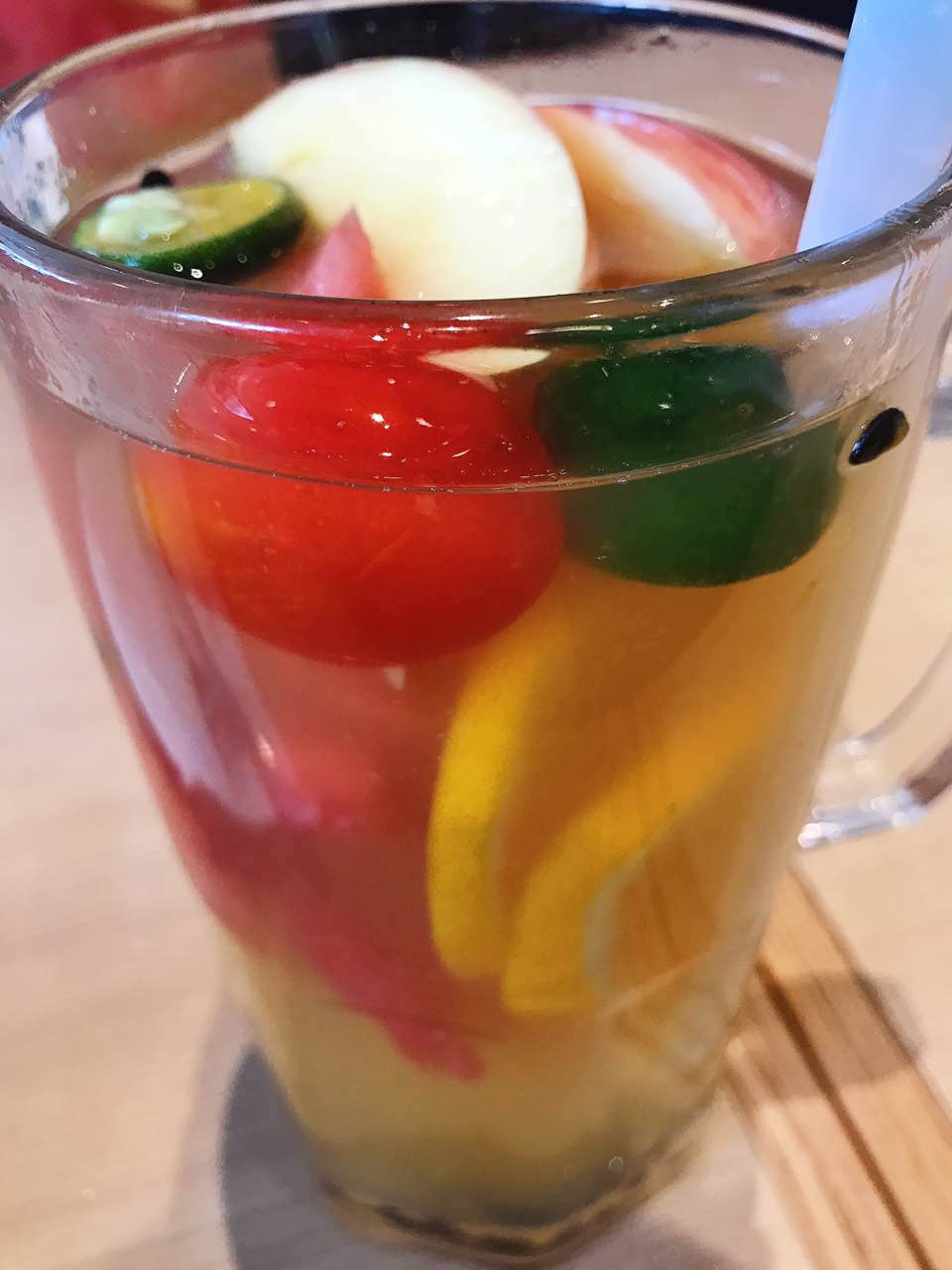 小龙虾披萨好吃,鲜果茶特别大杯,很凉爽。