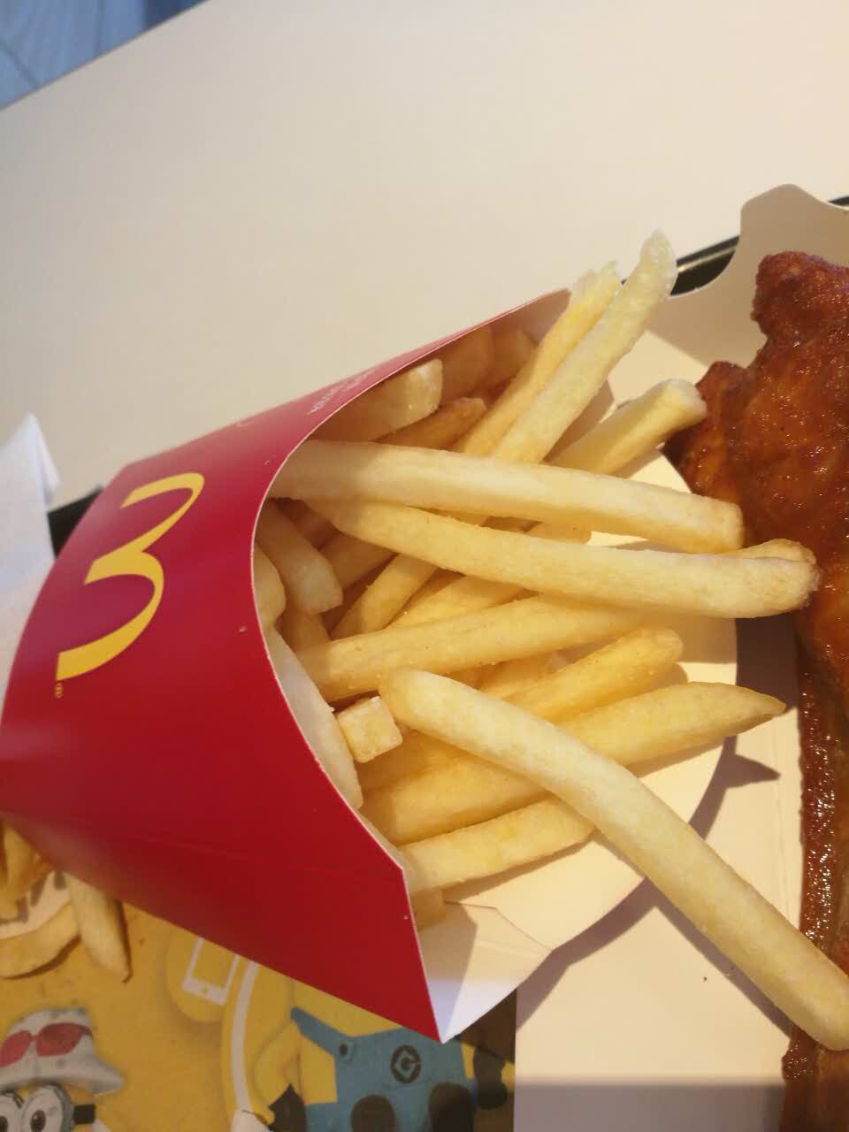 薯条味刚好,不用番茄酱也好吃,烤翅也不错,继续加油速度可以,就是自动点餐机的有些选择太少,应该提供多些更方便,鲜蔬沙拉不错,就是量太少了,然后沙拉酱略有些咸,希望改进哦。薯条味刚好,不用番茄酱也好吃,烤翅也不错,继续加油!