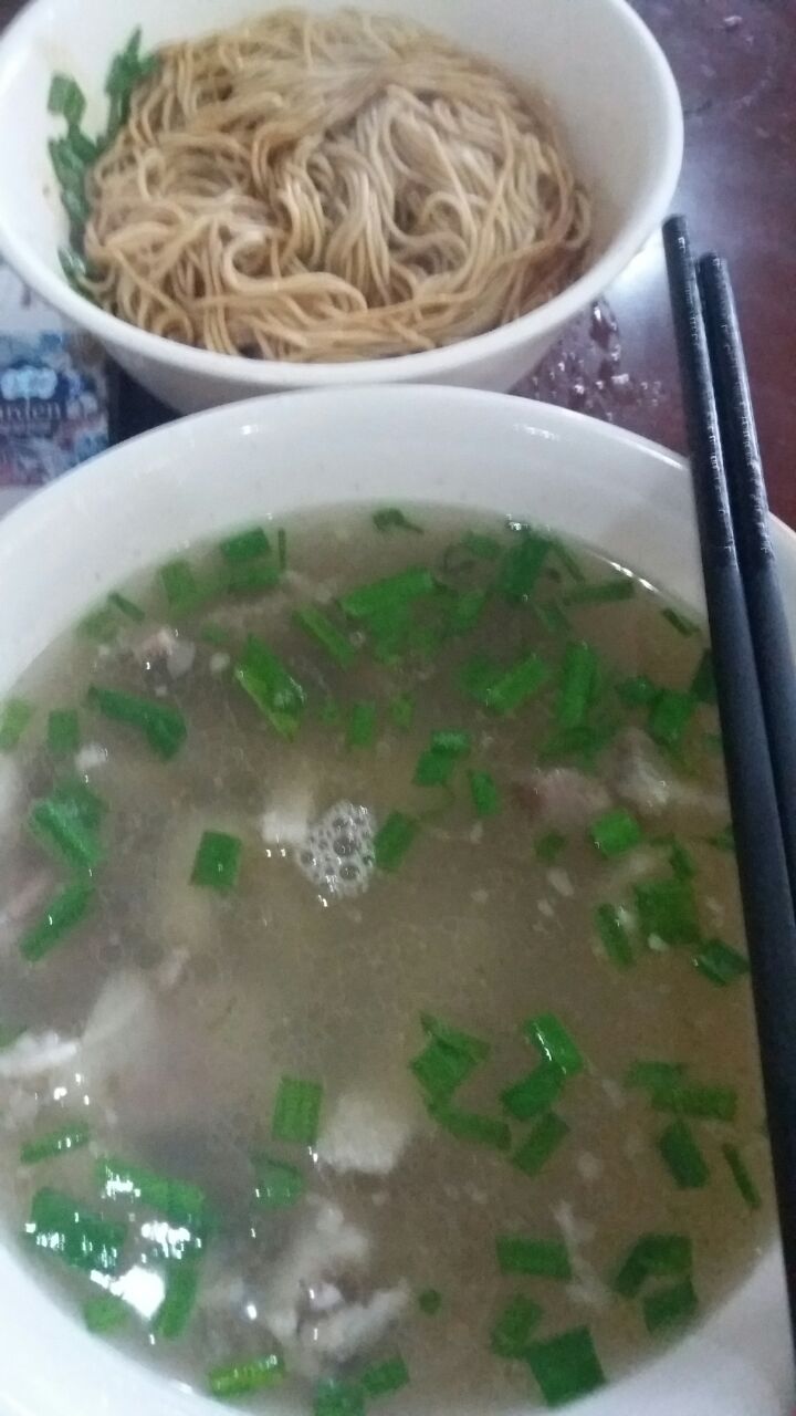 ...是梅村必吃之馆子,羊肉汤上桌,面一碗,羊肉汤一碗,羊肉片鲜嫩,汤面上飘韭菜叶,相当特色,必推荐上午十点40要从硕放机场飞大连的,朋友坚持要去蔡阿水羊肉店给我们送行,是梅村必吃之馆子,羊肉汤上桌,面一碗,羊肉汤一碗,羊肉片鲜嫩,汤面上飘韭菜叶,相当特色,必推荐。