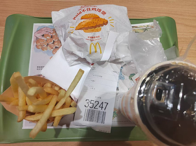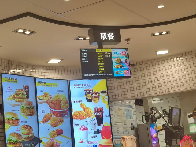 这家店位于。浑南奥莱北门儿一楼。虽然多次经过,但还是第一次来吃。店内面积不大,但就餐的客人还是不少的,很多年轻人还有家长带着孩子来过来吃。这个地方很适合,逛街累了歇歇脚,吃点小食、汉堡。点餐可以自助点餐,小程序下单都很方便,如果不会操作,有服务员帮忙,服务态度非常好,年轻的服务员都会积极的提供帮助。好长时间没吃汉堡了,才发现汉堡胚实在是太小了。都遮不住鸡排。而且现在可乐也没有吸管儿了,都是直接喝的。