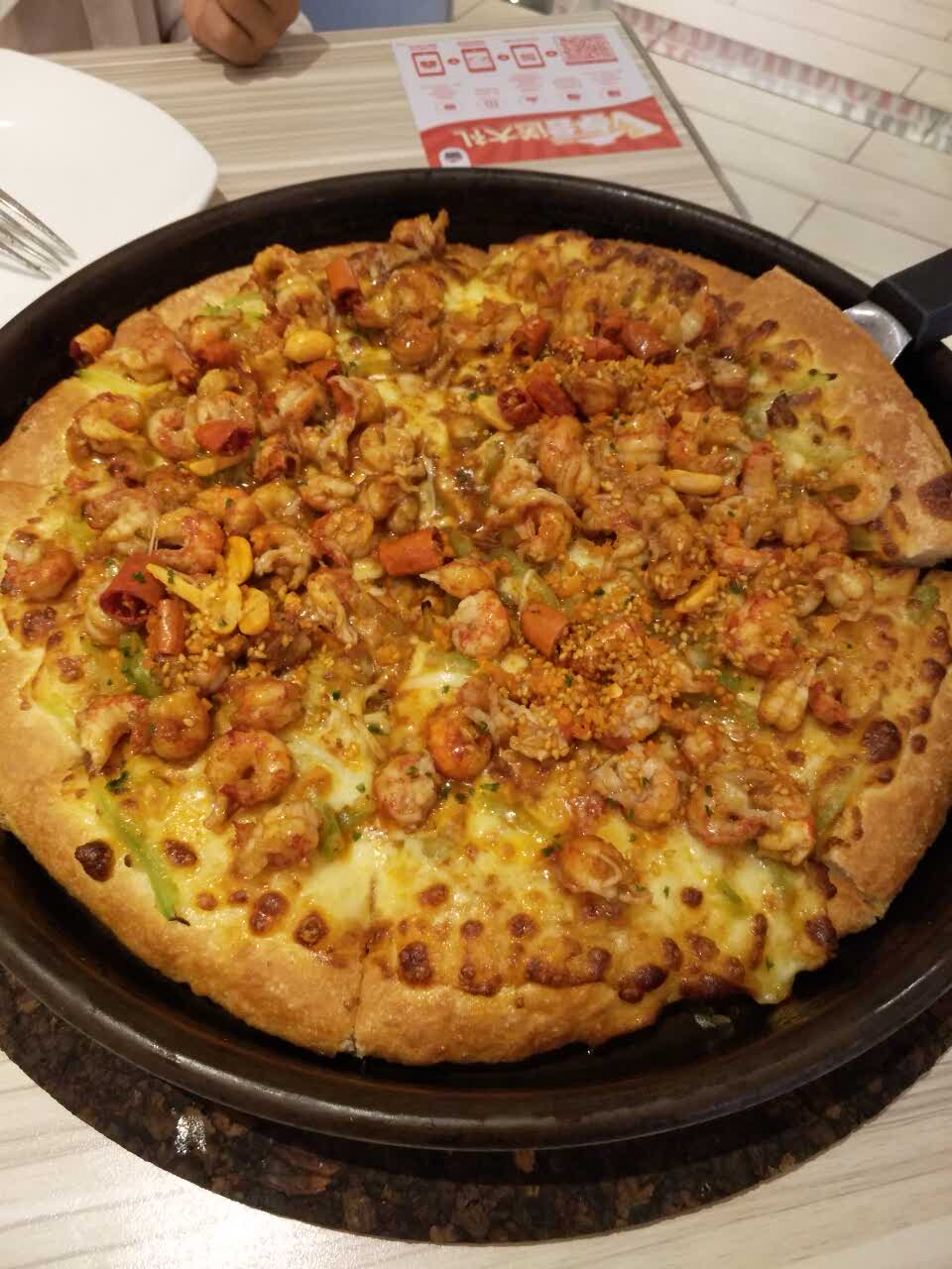 新上市的小龙虾披萨味道好极了,饮品也是特惠的,