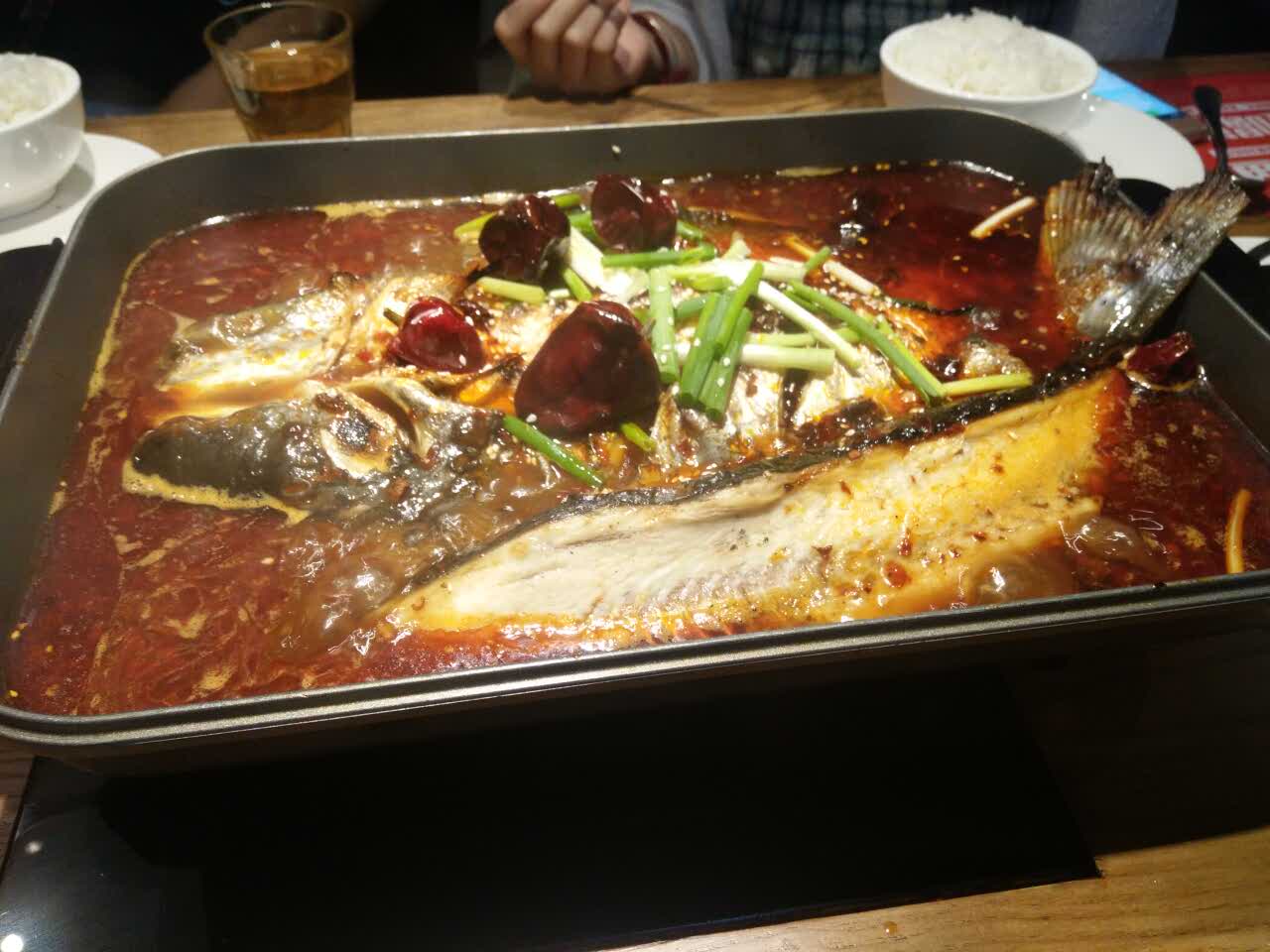 四个人点一条烤鱼两斤田鸡吃的很饱哦,而且西瓜和炸小馒头超级好吃的!!!