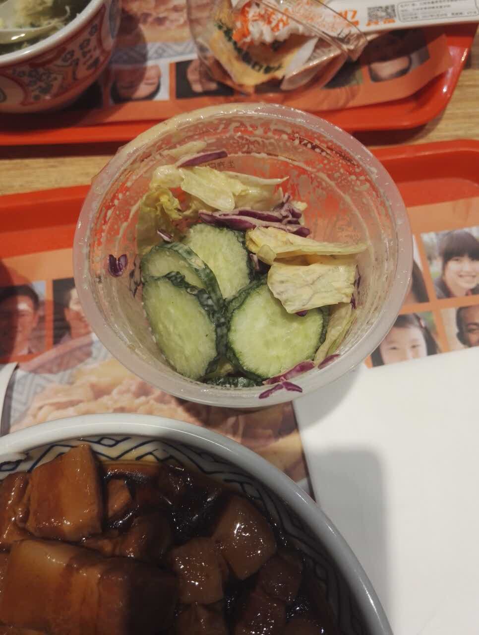 必须得大碗吉野家,东坡肉真心不错,摇滚沙拉也很棒,方便!