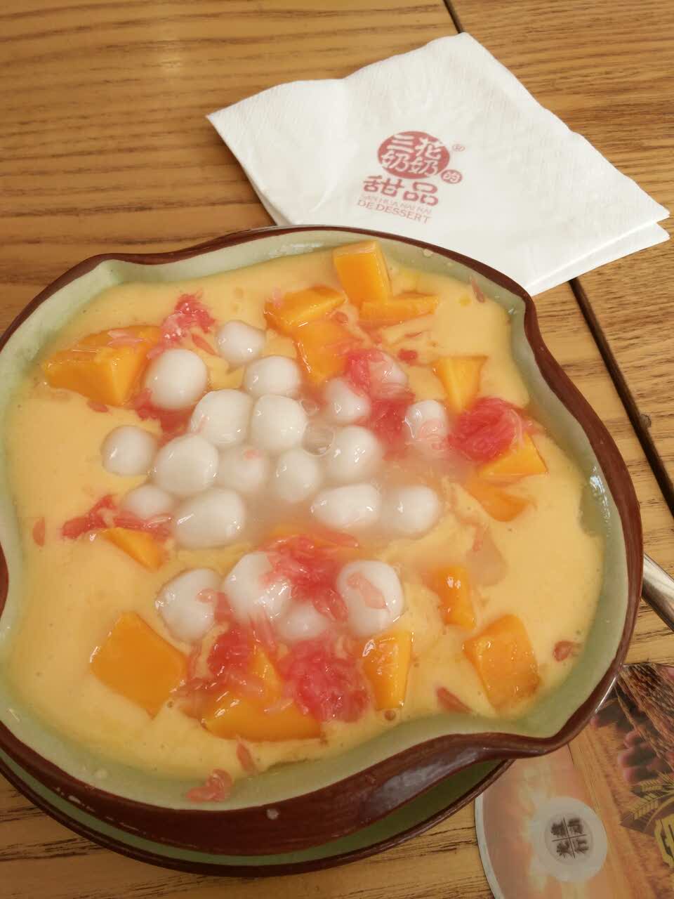 今天星期天人比较多,口味还不错,就是觉得杨枝甘露的口味稍微差点,芒果白雪黑糯米口味棒棒哒