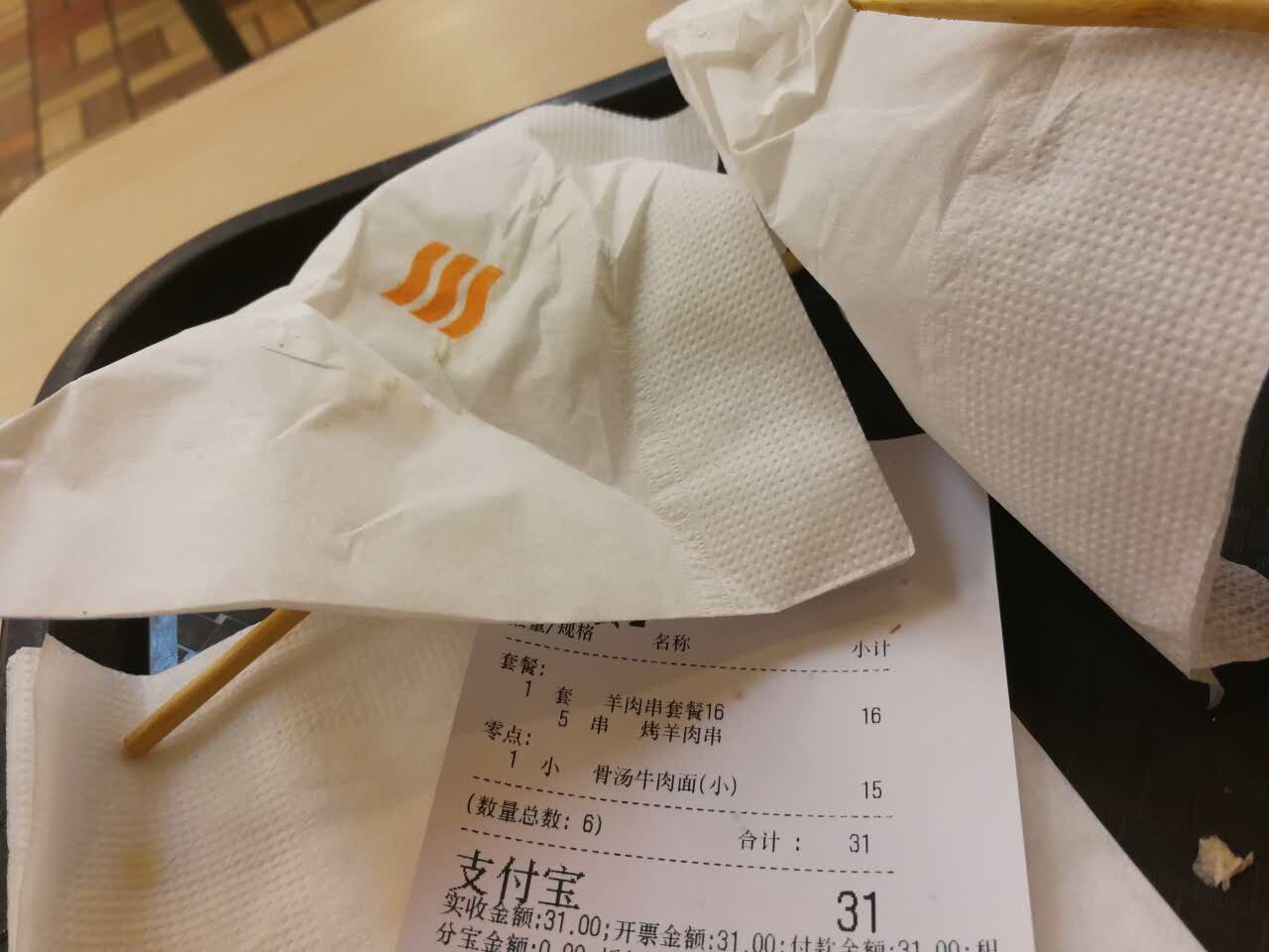 拉面不筋道。点的肉串,怎么感觉没有羊肉味?