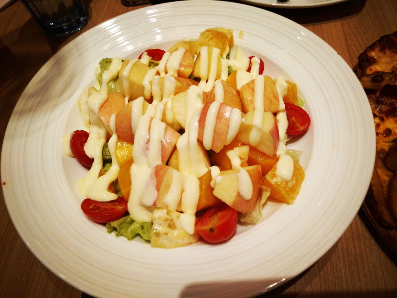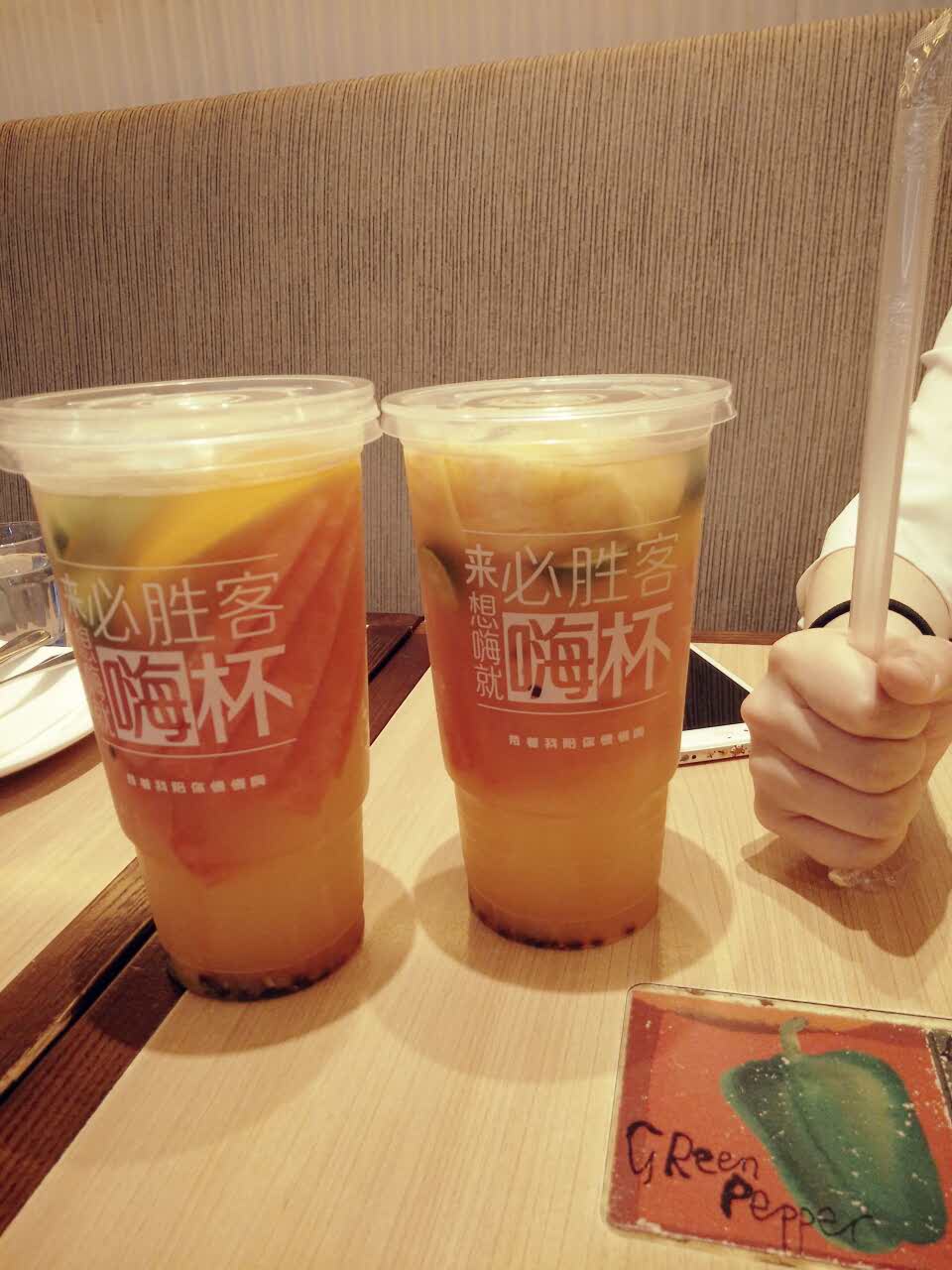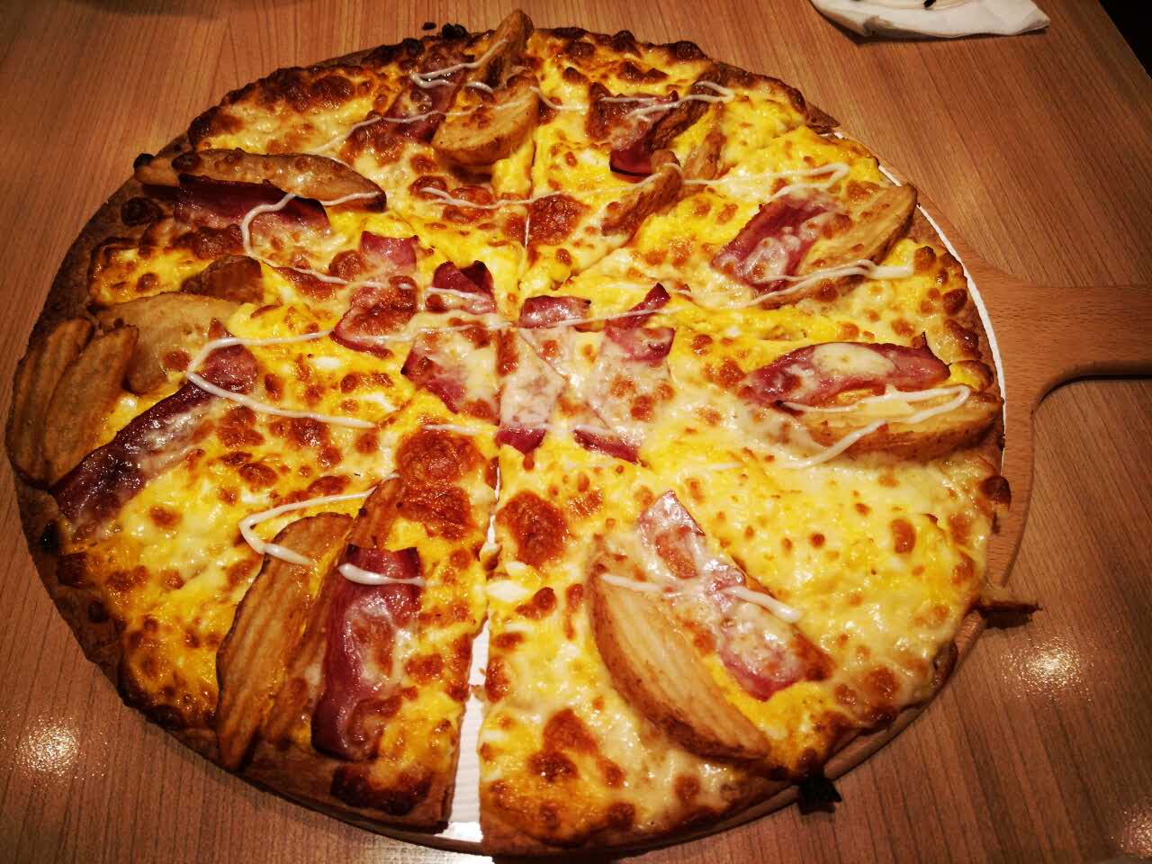 这个新出的披萨很好吃饼底脆脆的~果茶也很好喝~
