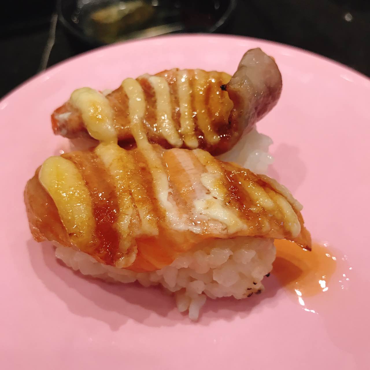 还是最爱火炙的 争鲜的比天绿少几种 比如没有火炙虾 不过三文鱼的和蟹棒的也都不错啦 还有几种螺...
