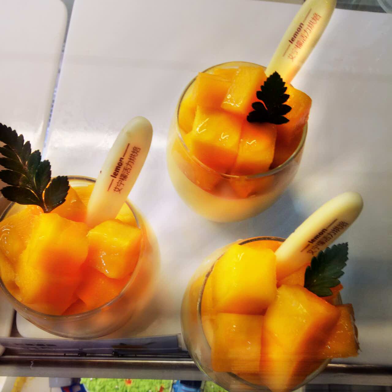 芒果慕斯味道很赞 就是一个人吃感觉太多有点腻 吃完被子还可以拿来养植物棒棒哒