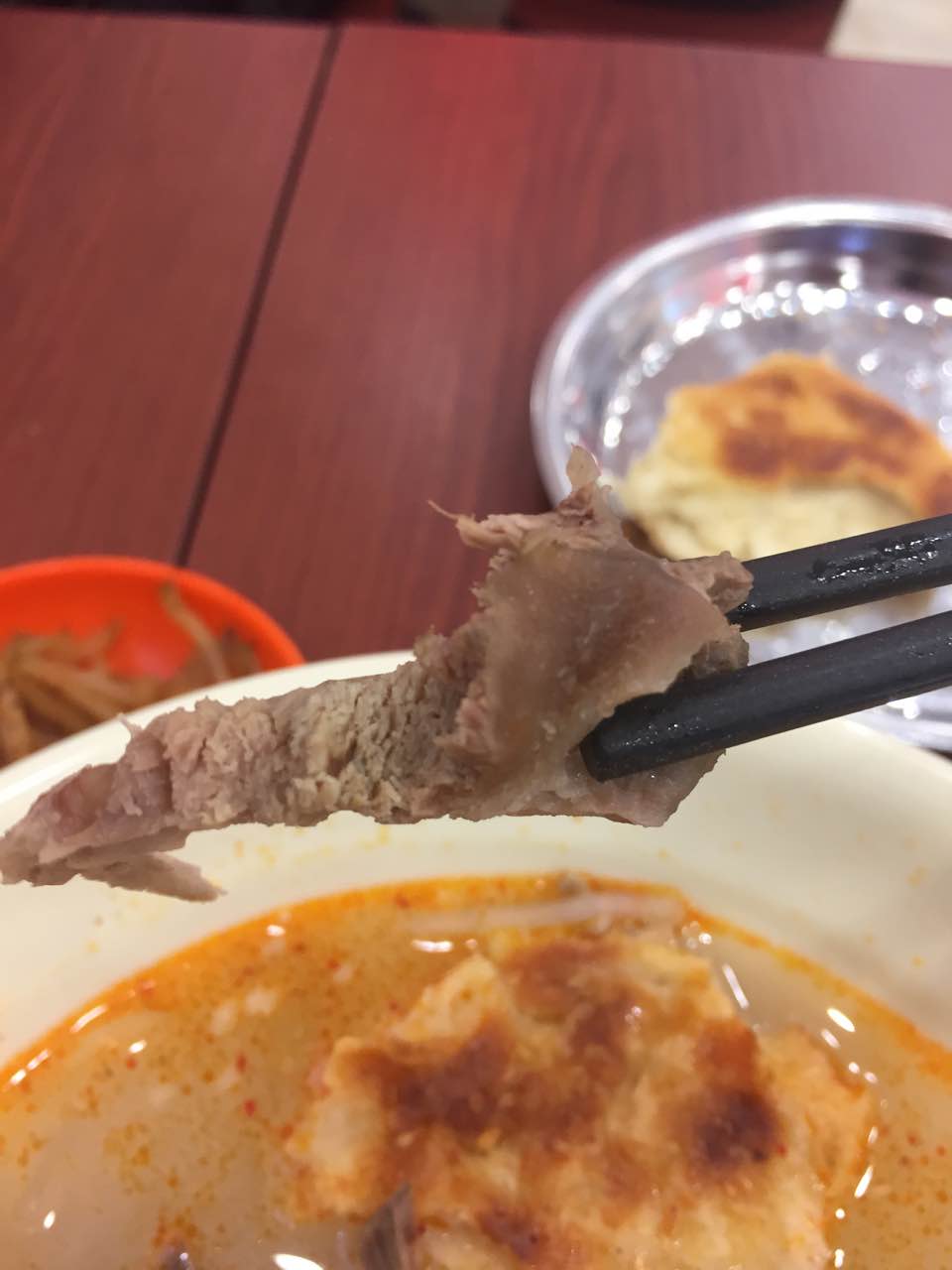 只能泡着吃了。羊肉汤里有一块肉切的非常厚,咬不烂。……作为老顾客这次非常失望。真不是不顾口碑