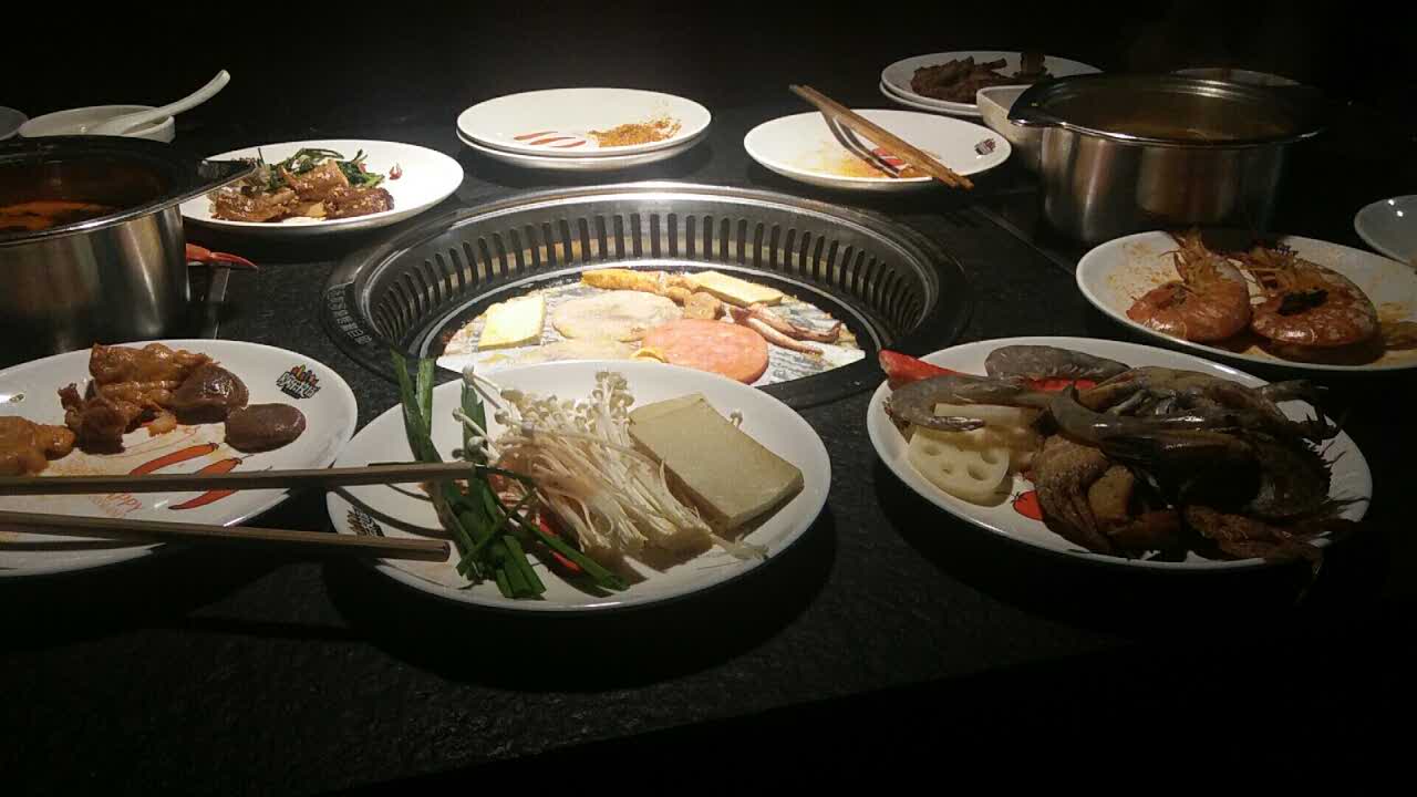 味道还不错 烤肉种类挺多的,菜品也还不错,其他的烧烤甜点也有,但是吃不下了,感觉比对面九月椒好一些味道还不错 烤肉种类挺多的,菜品也还不错,其他的烧烤甜点也有,但是吃不下了,感觉比对面九月椒好一些~中午来的,人还挺多