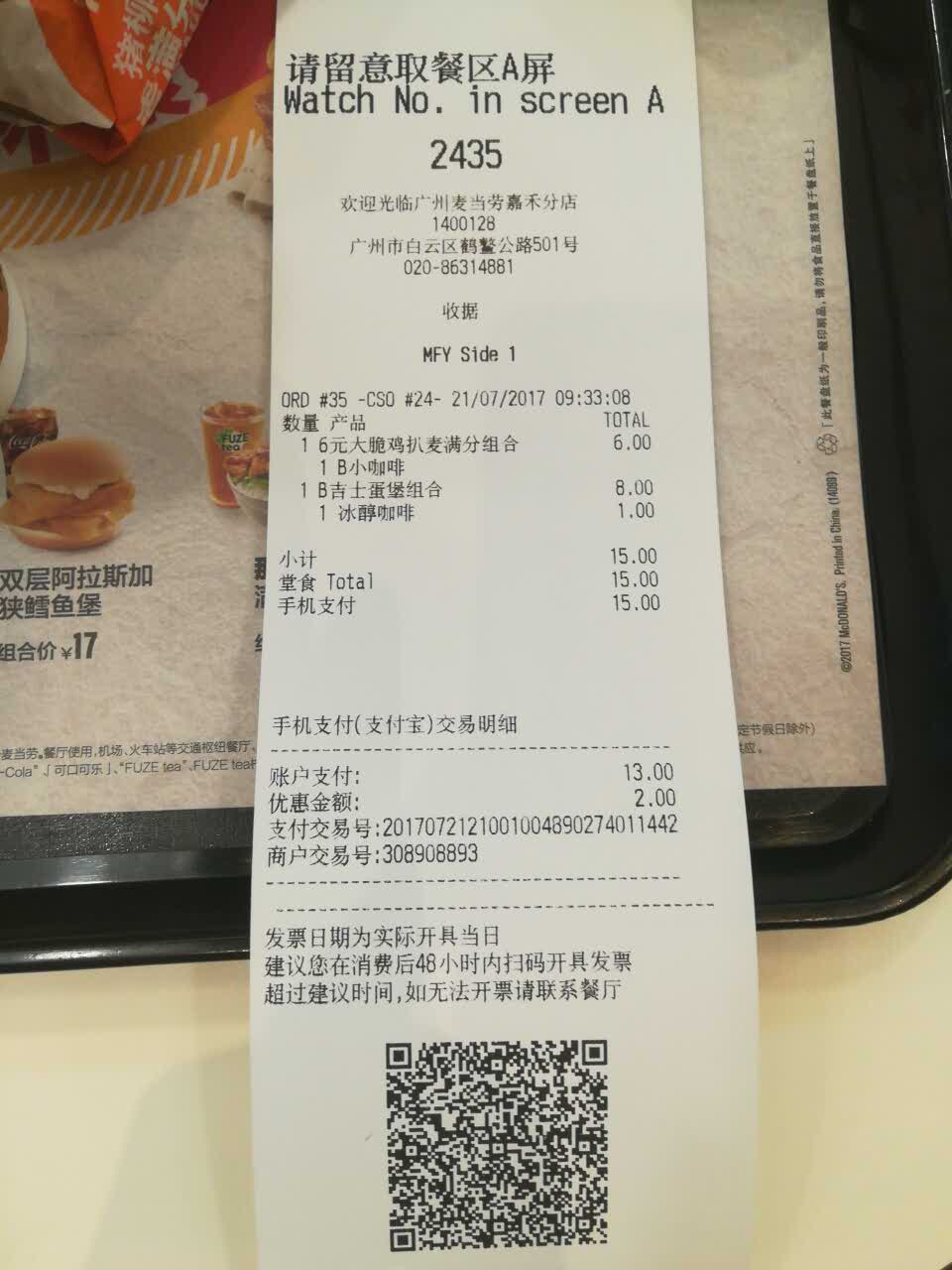 网友2017-07-21每次来麦当劳都是用自助点餐机点餐,方便快捷。员工服务热情有礼,配餐快捷准确,非常给力每次来麦当劳都是用自助点餐机点餐,方便快捷。员工服务热情有礼,配餐快捷准确,非常给力。而且有时叫服务员调配一些非套餐的食品或酱料时,都能尽力去满足客人所需,服务非常用心,值得点赞