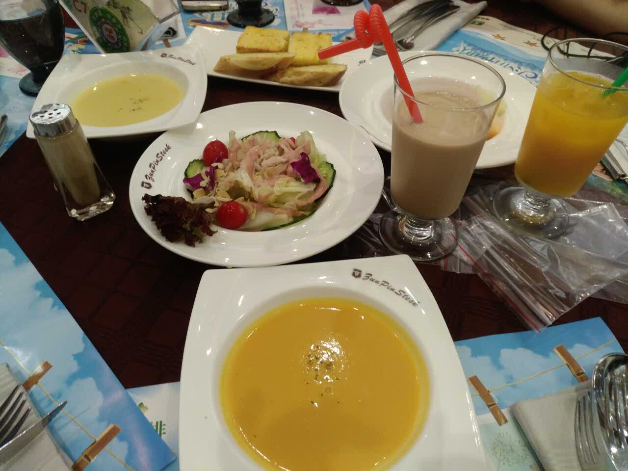味道不错,服务很好,分量也多,吃的很愉快很开心,冰激凌超级好吃说,牛排很有嚼劲。