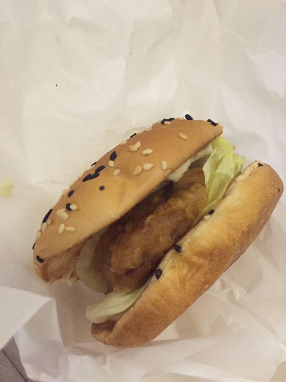 去的晚了只有菠萝鸡腿堡。挺好吃的,取餐一共用了一分钟。