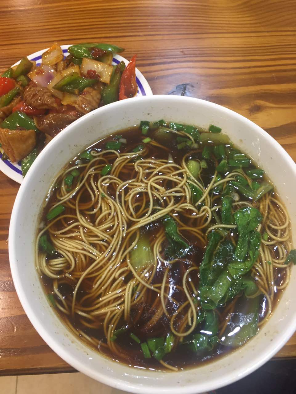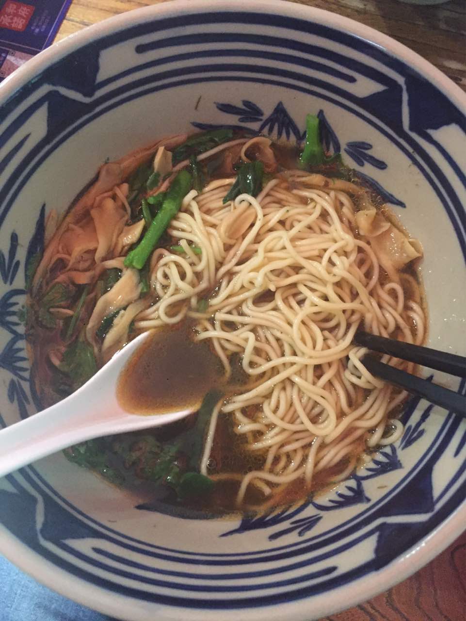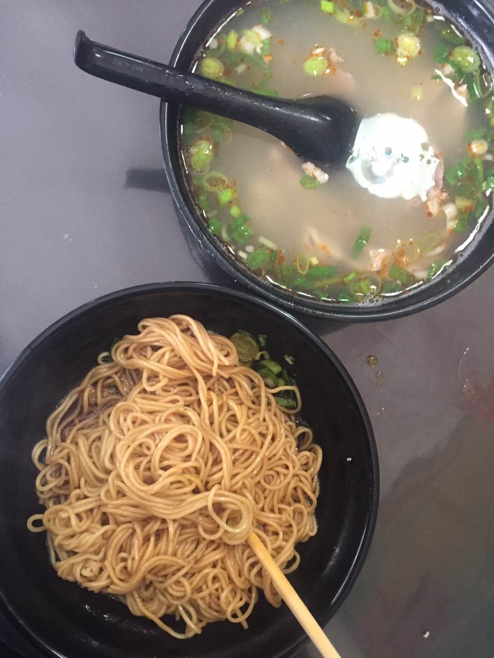 汤头很浓,完全感觉不到面条的碱水味儿。白汤鲜味浓郁不吃酱油族的最爱,红汤酱香味美无愧中华十大名面的美誉。