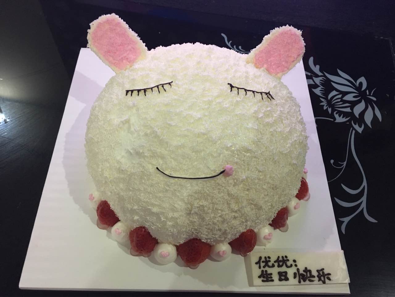 8寸的蛋糕刚刚好,很可爱……味道也不错。要是中间做成水果的就更加完美了……