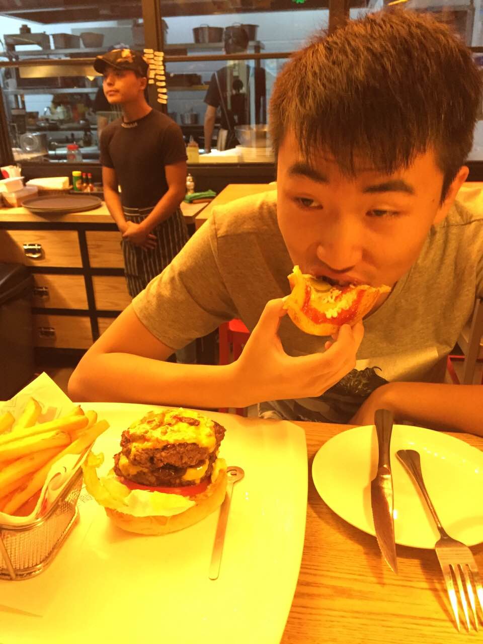 见过有人一层一层吃汉堡嘛,啊哈哈哈