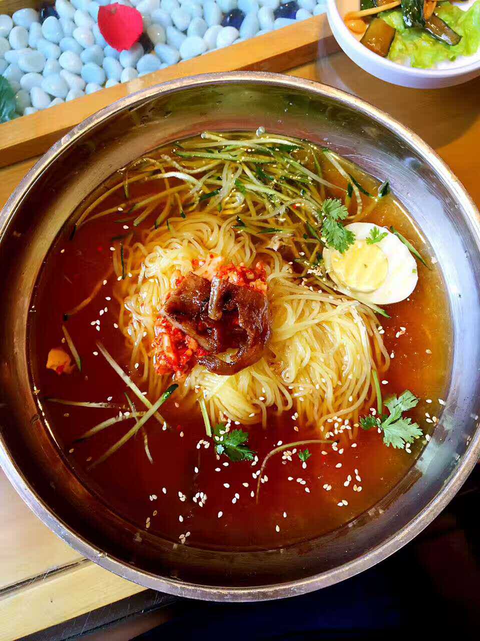 冷面很凉快,而且还赠送了好多小菜和辣白菜,就是人有点多,需要等位,不过以后可以提前预约