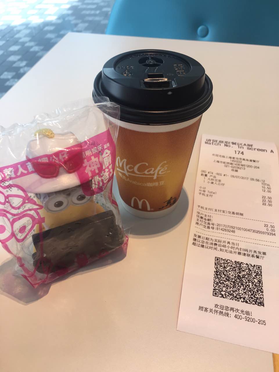 为了买小黄人玩具,在等人的时候买了杯咖啡