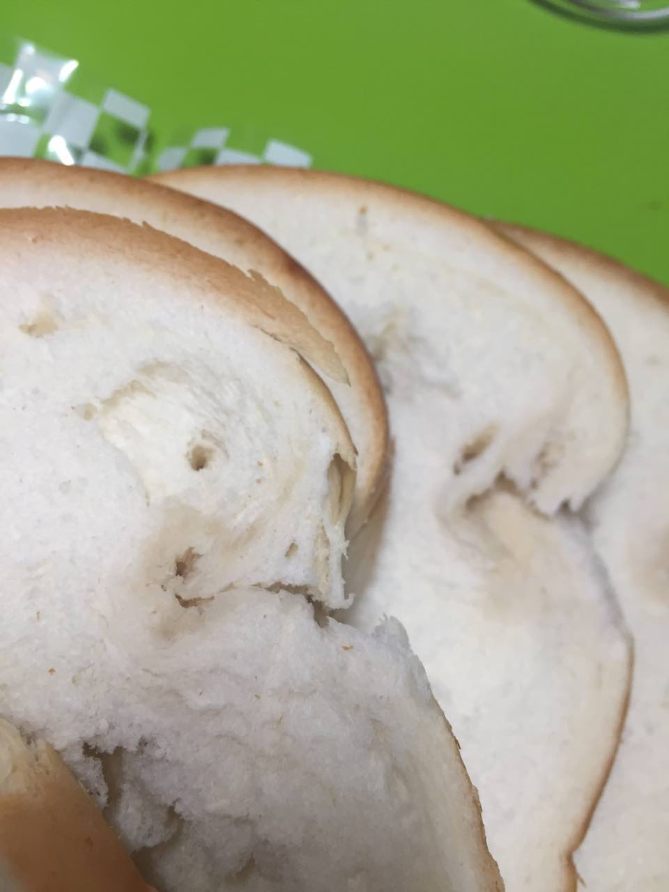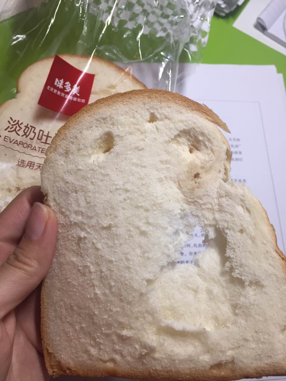 网友2017-04-01吃味多美蛋糕面包这么多年了,头一次感觉到失望。这个面包切片是怎么了吃味多美蛋糕面包这么多年了,头一次感觉到失望。这个面包切片是怎么了?大洞、小洞的,还有一处贯穿所有切片的深色斑点,闻着有淡淡的酸馊味儿