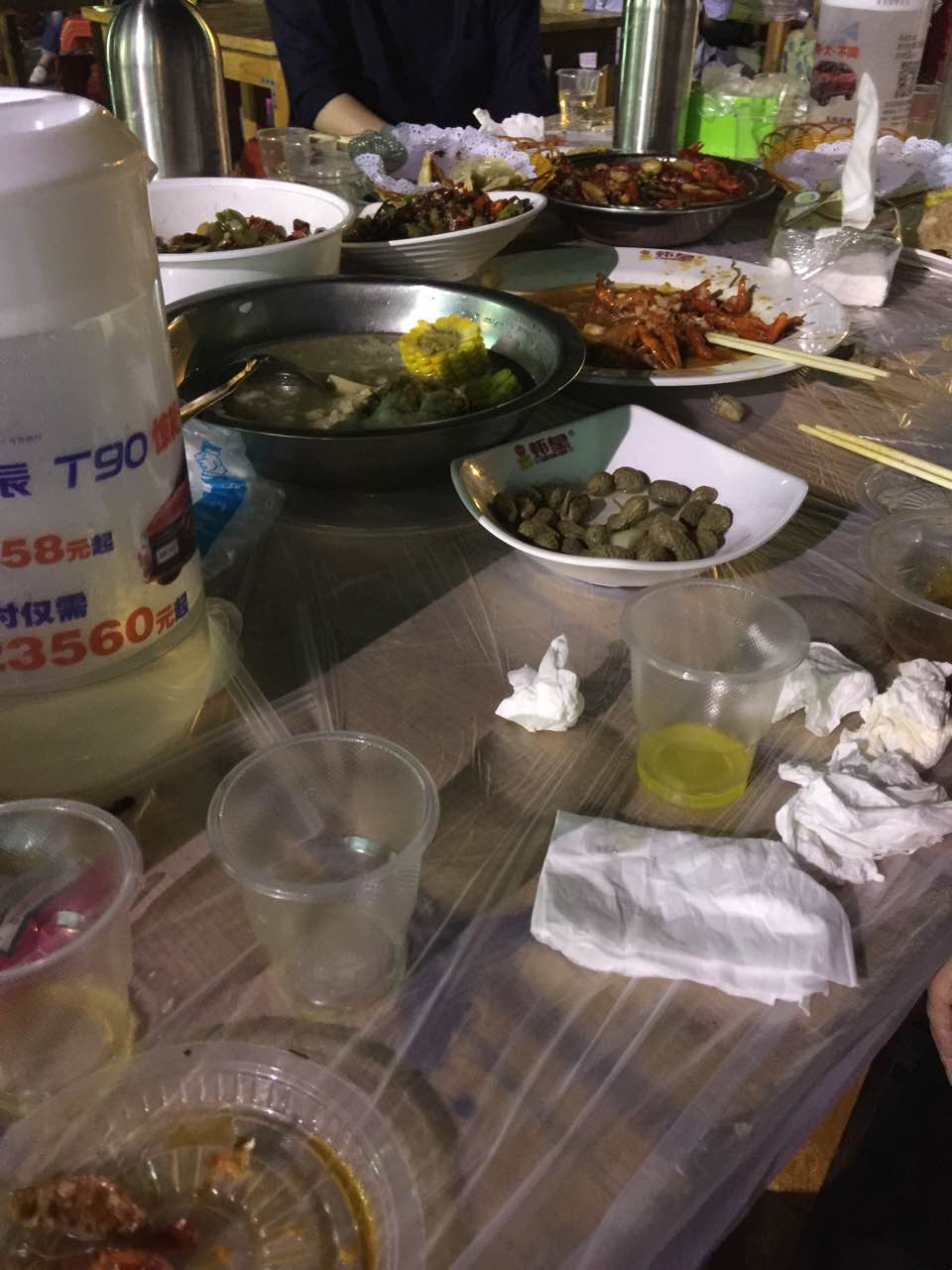 虾皇生意真的好好啊!晚上一桌接一桌,大虾的味道也很好,很晚了生意还很好!