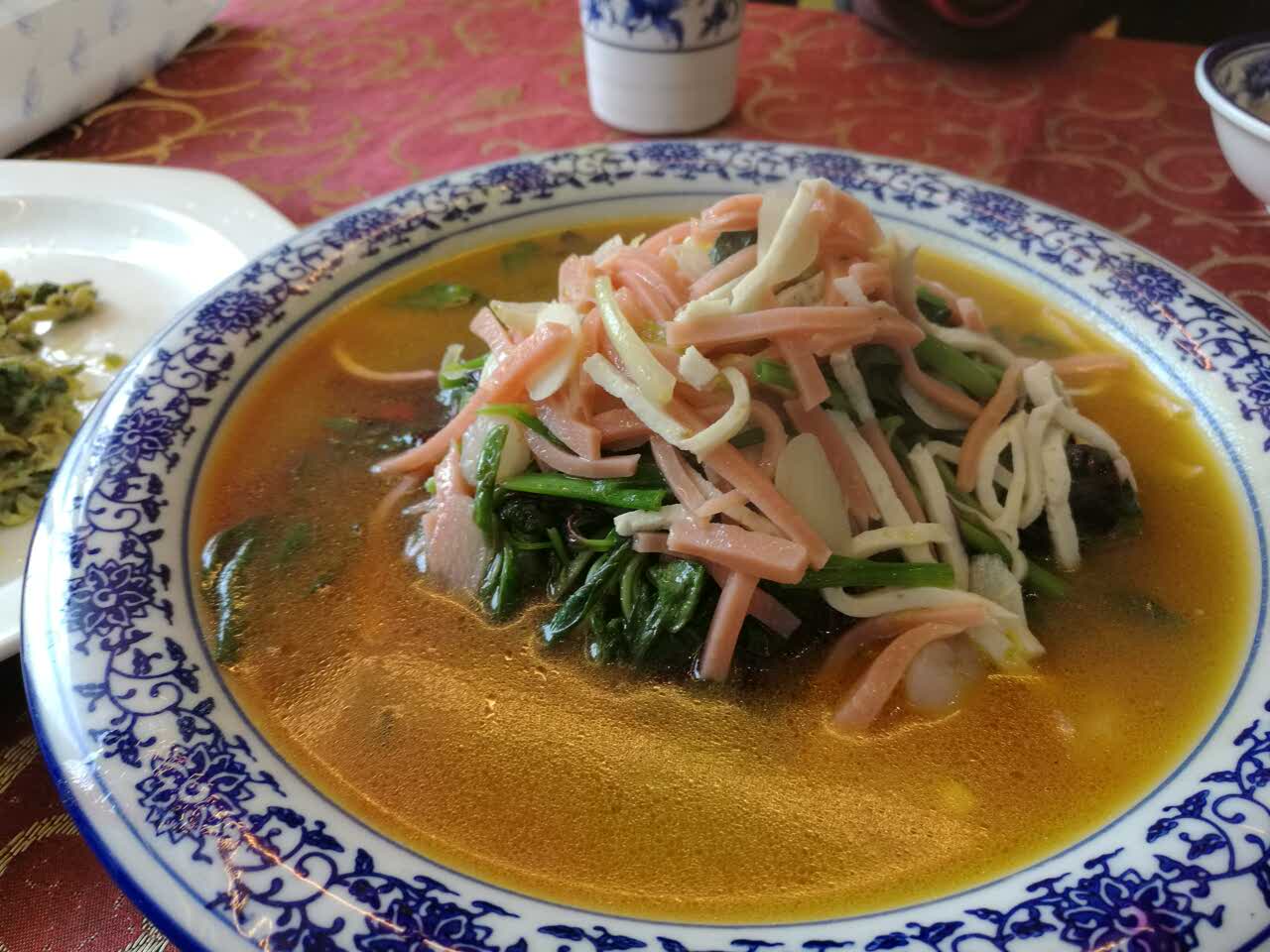 网友2017-04-08菜了口味很好,量太大了,三个人点了三个菜,半个鱼头,一份面,根本吃不了在大酒店里面环境高大上,服务也很亲切啊。菜了口味很好,量太大了,三个人点了三个菜,半个鱼头,一份面,根本吃不了。