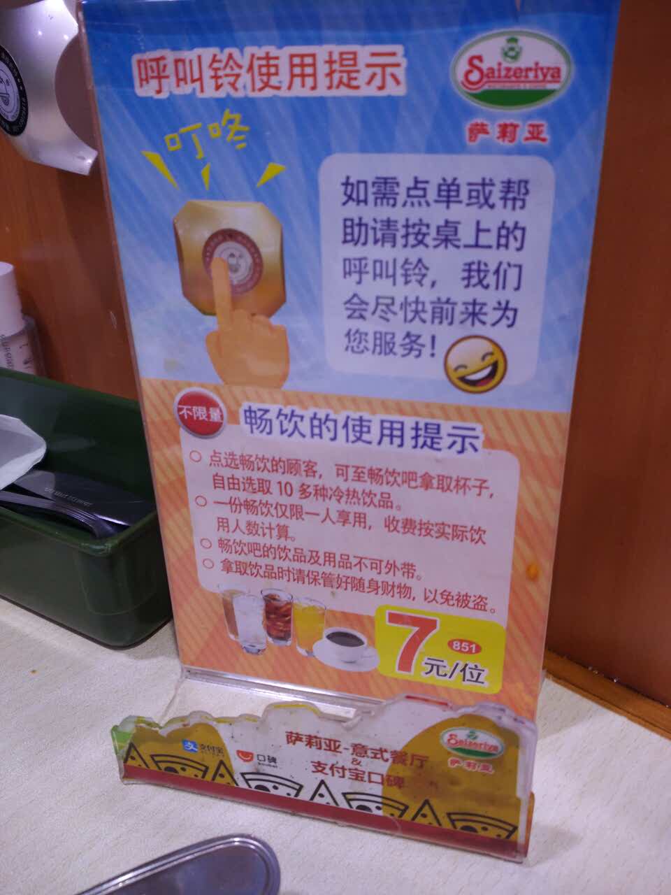 百联这家莎莉亚生意一直很好,每次饭点都要排队,他家东西不错,性价比很高,7元畅饮必点