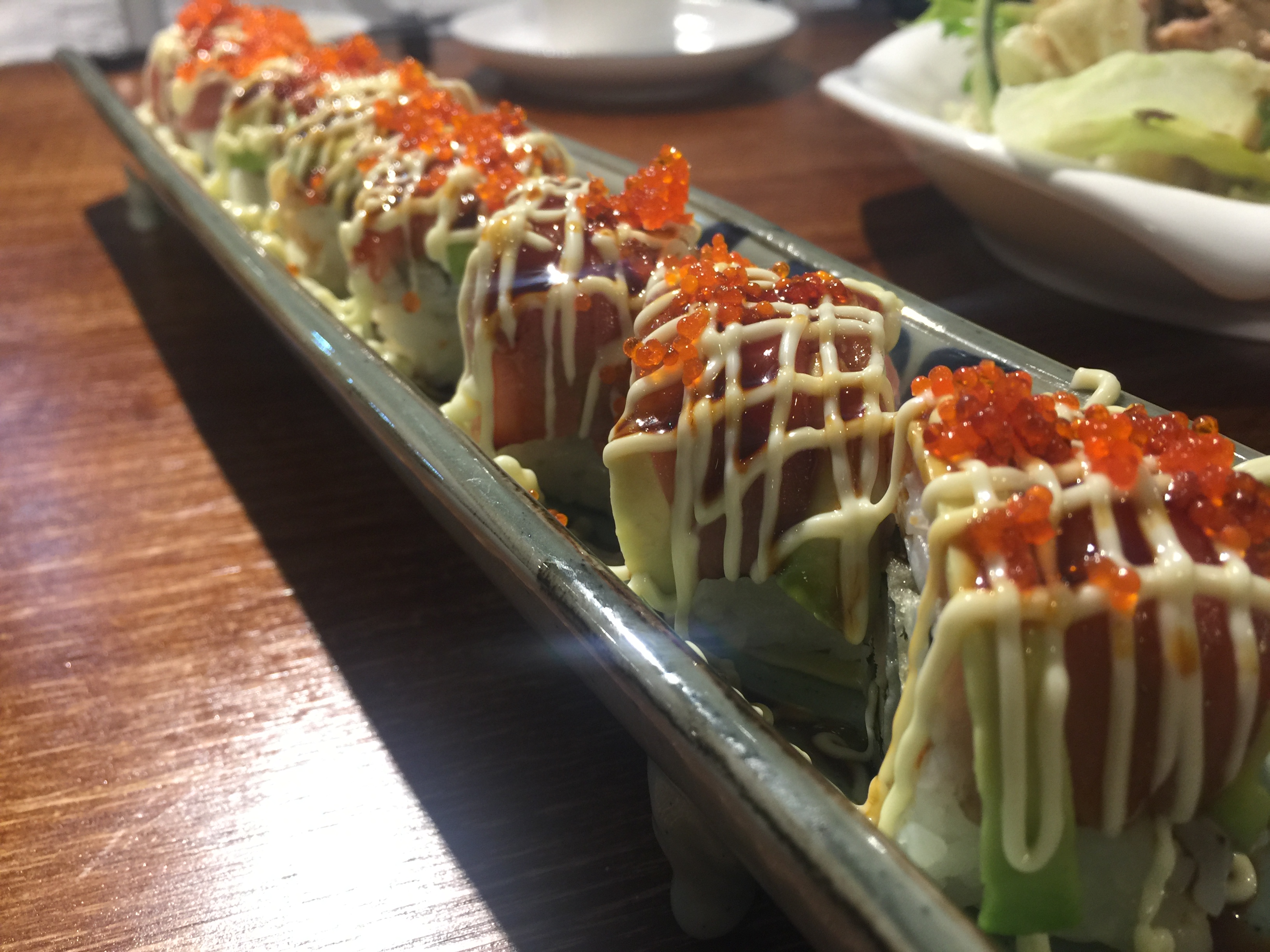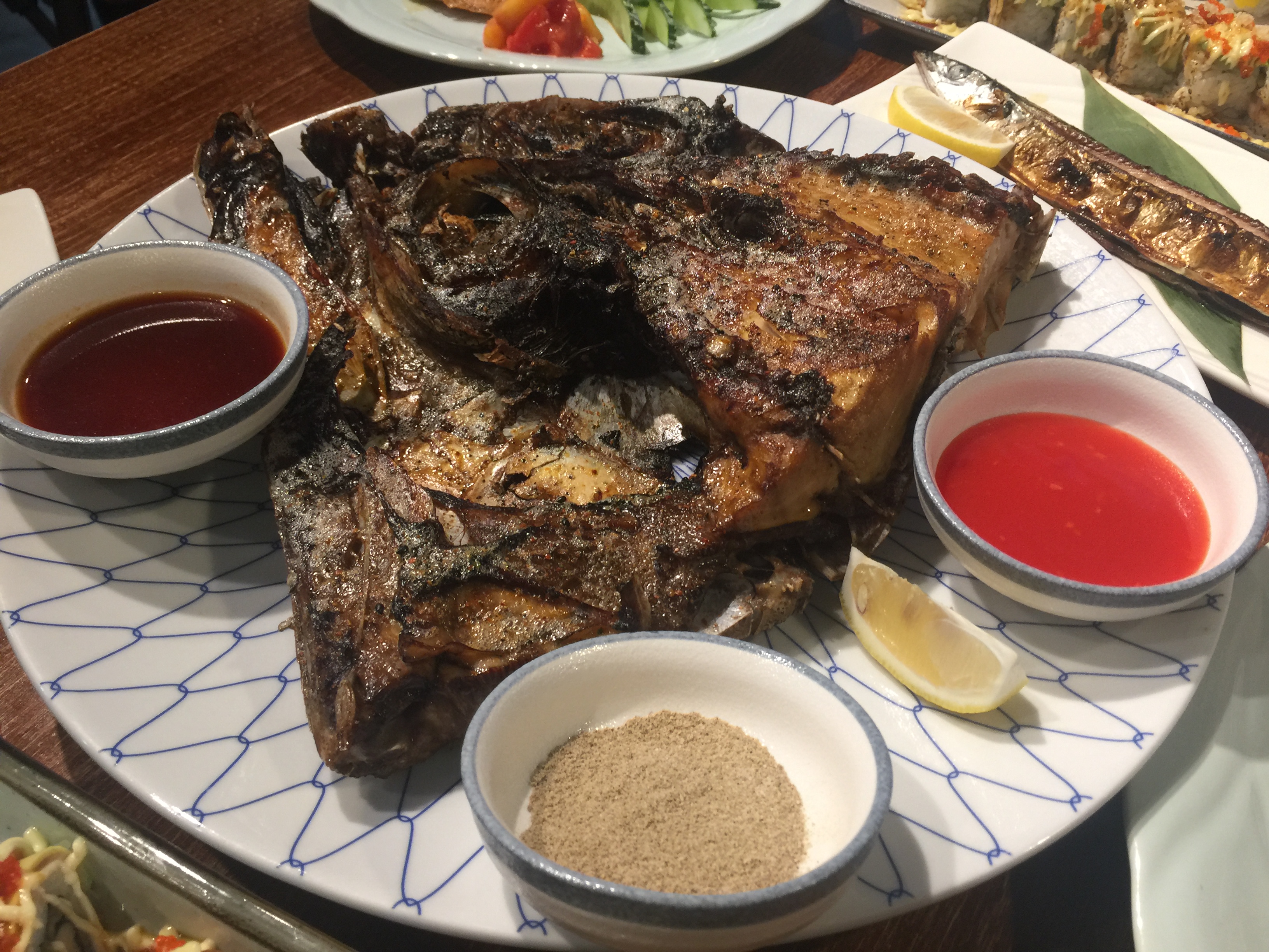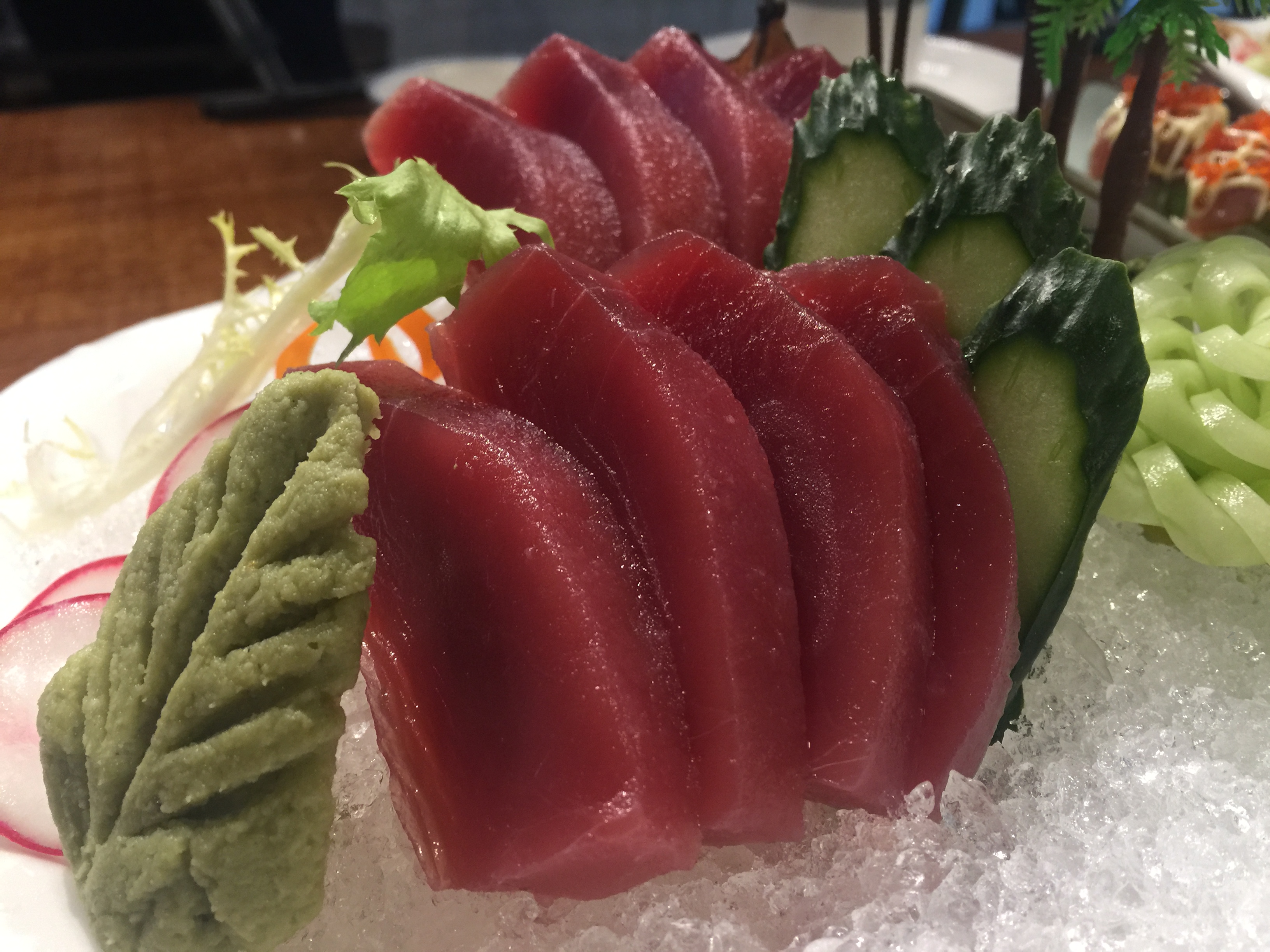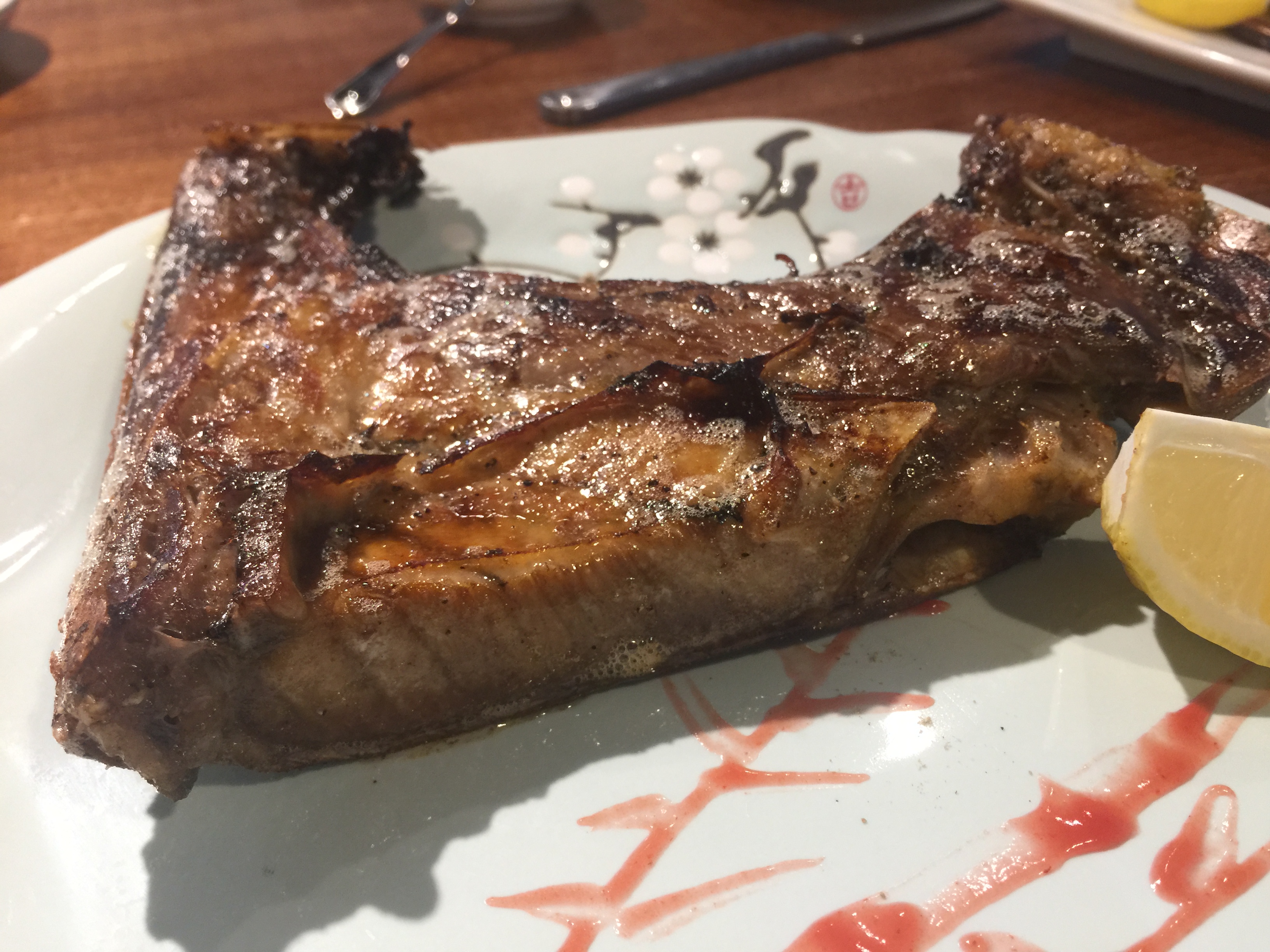 爱吞拿金枪鱼料理位于鄞州区沧海路52号,一家以金枪鱼为主材料的餐厅,吞拿(tuna),大概是金枪鱼的学名,高档日料里必有蓝鳍金枪鱼这道食材,虽然在国内受众还是三文鱼居多,但是这几年金枪鱼有慢慢超越的趋势,一个是本身的脂肪含量更低,而且金枪鱼尚未有养殖的基地,第二个是品质较好的金枪鱼开始进入国内市场,而不是像很多五星自助提供的金枪鱼刺身,寡而无味,色泽暗淡,那些都是冷冻产品,而不是冰鲜。 这家招牌菜首推特制的金枪鱼鱼头,大小大概类似面盆吧,比成年男人双手掌面积更大,需要厨师用秘制的酱汁侵泡四小时后再烤制一小时,所以需要提前预约,打开后肉也是很多,最佳食用部位是眼眶旁边,除了富含胶纸,另外口感也更滑嫩,估算下整个鱼头提供给四个成年人都没有问题。 还有金枪鱼鱼脖,鱼尾,这两道相对于鱼头更加mini,也适合两人餐,个人更爱鱼尾,Q弹有力,美容养颜,满满都是蛋白质。 当然也有金枪鱼刺身,厚切,色泽红润,入口细腻,蛮新鲜的。 还有金枪鱼寿司,美式做法,有全熟也有半熟,寿司的量和口味都还不错,价格也蛮实惠的。 据说店主是经营金枪鱼工厂的,所以还有金枪鱼罐头出售,也正因为这个原因,所以食材的进价也比人家低,噶菜品也更优惠了。