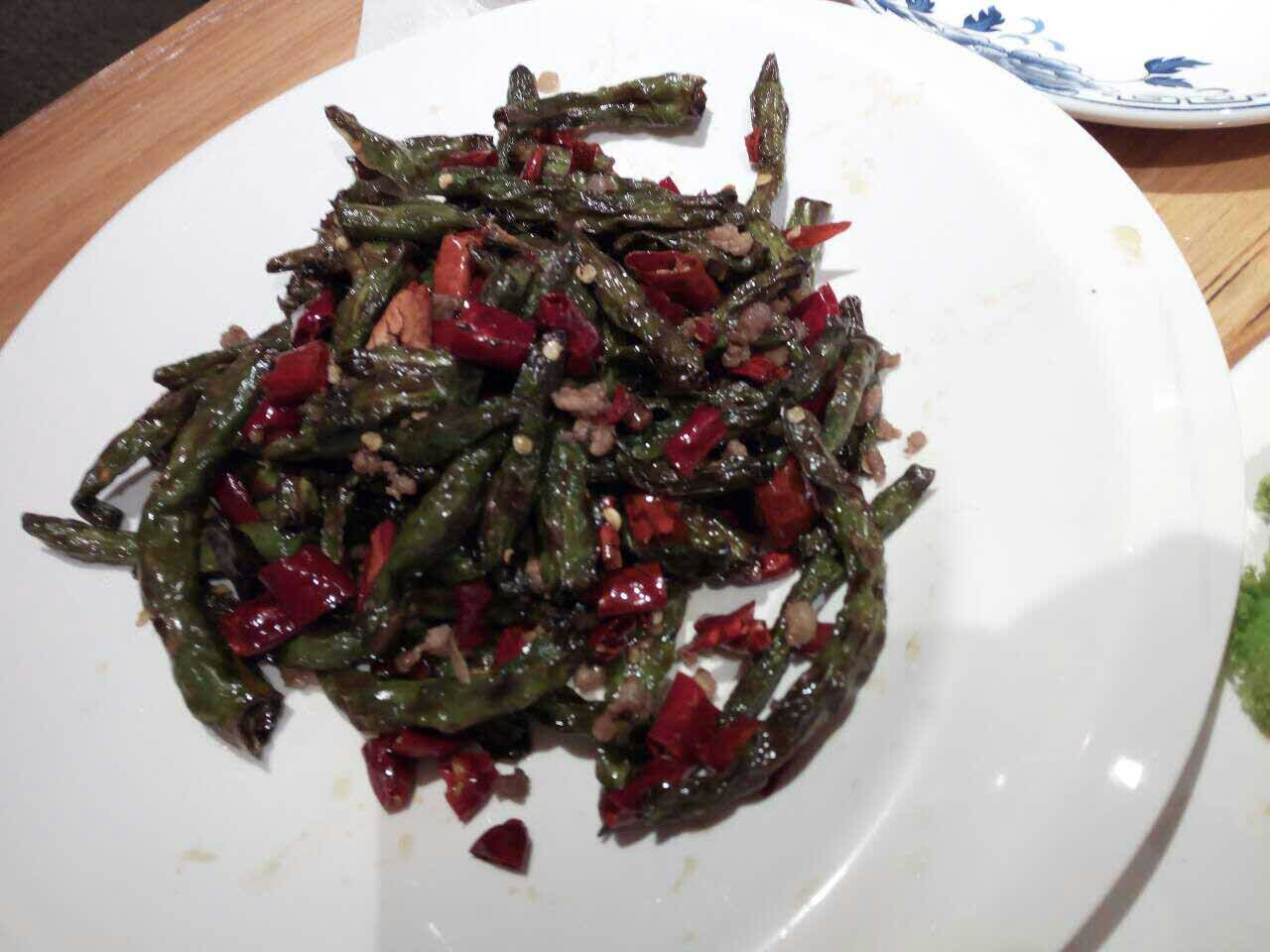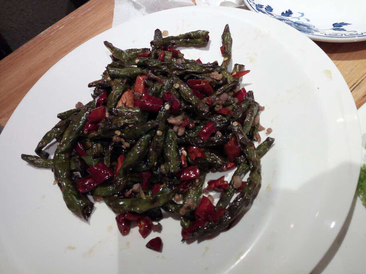 溜肉段好吃,凉拌龙须菜也很好吃,干煸芸豆炒糊了,看图。