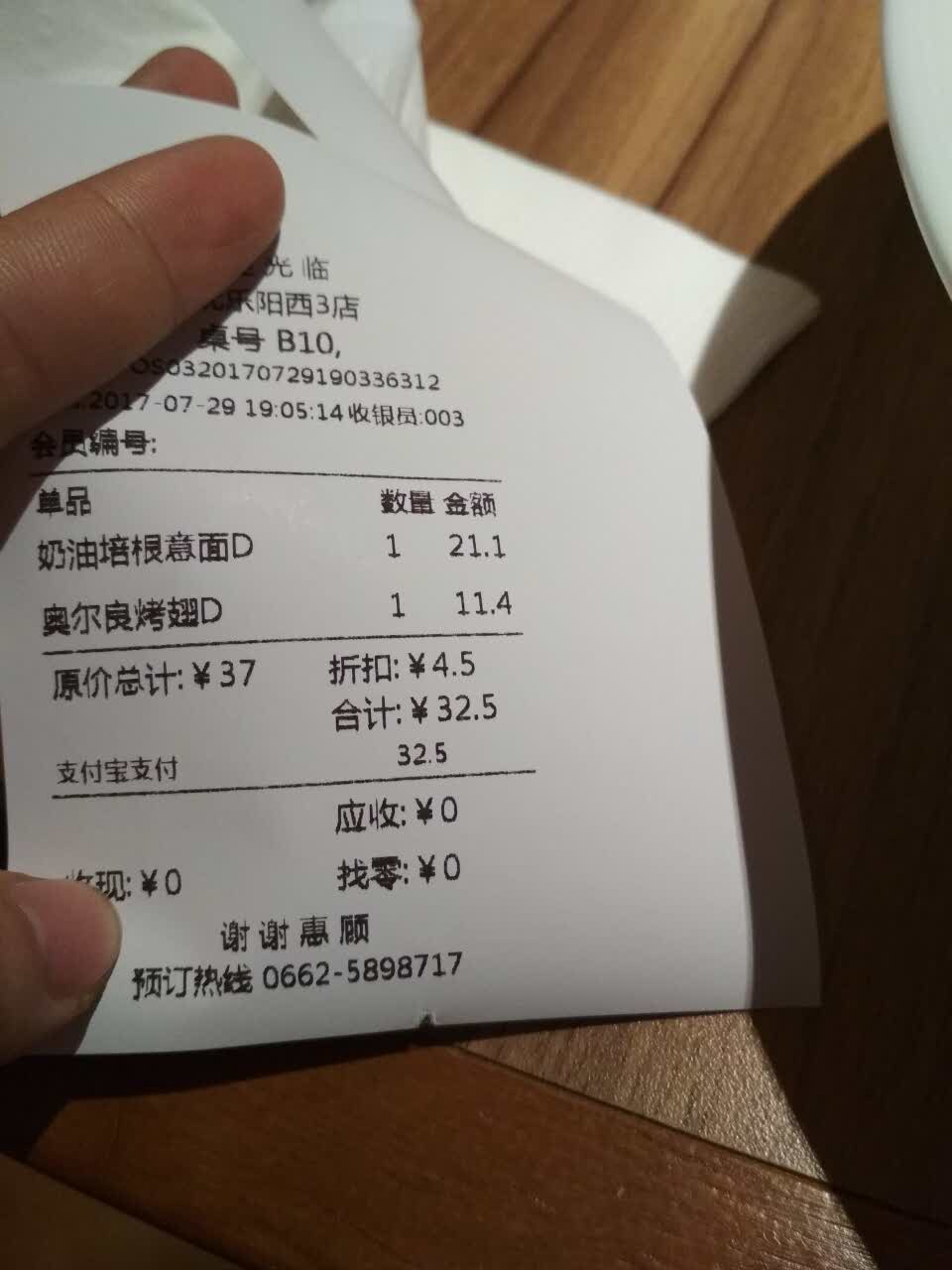 网友2017-07-29...人而言勉强接受,一整盘意面,奶油和意面还不错,培根虽然撕碎了,但是实际上可能连一整片培根都没有服务很一般,东西味道还行,有会员卡打了折之后价格我个人而言勉强接受,一整盘意面,奶油和意面还不错,培根虽然撕碎了,但是实际上可能连一整片培根都没有