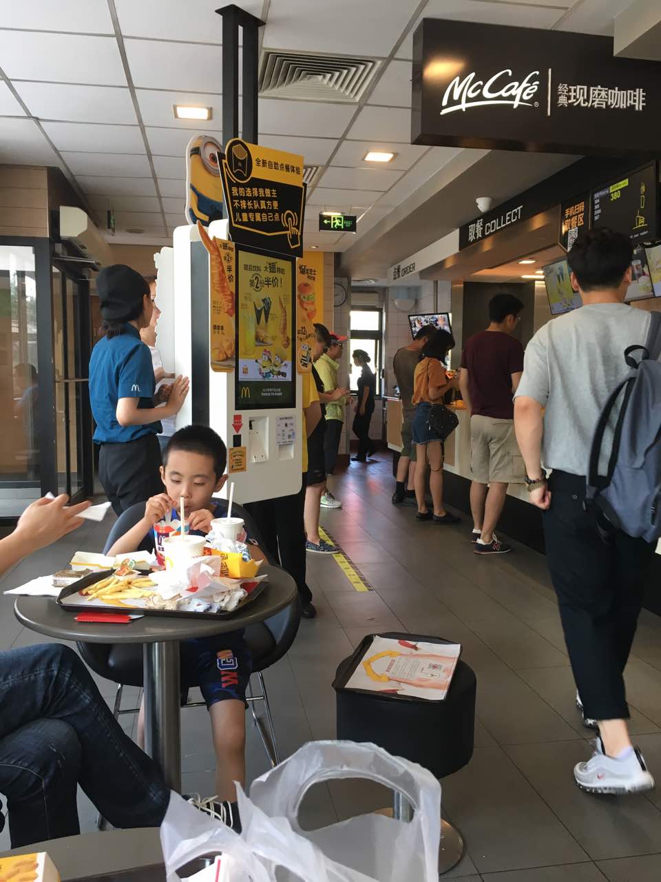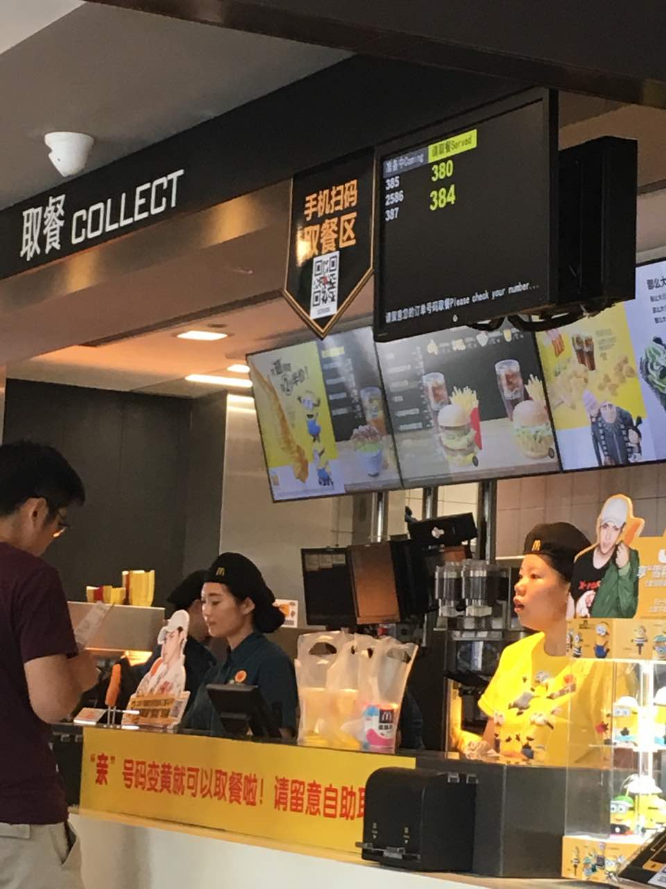高效的点餐服务,先进的自助点餐设备和排队取餐,是M的典范店
