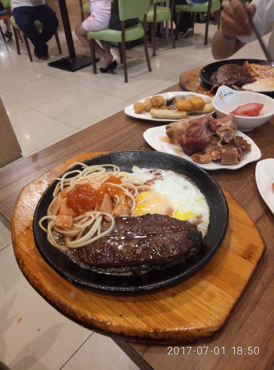 牛排非常好吃,配菜也都很棒,最主要是牛排不限量,以后还会再去。