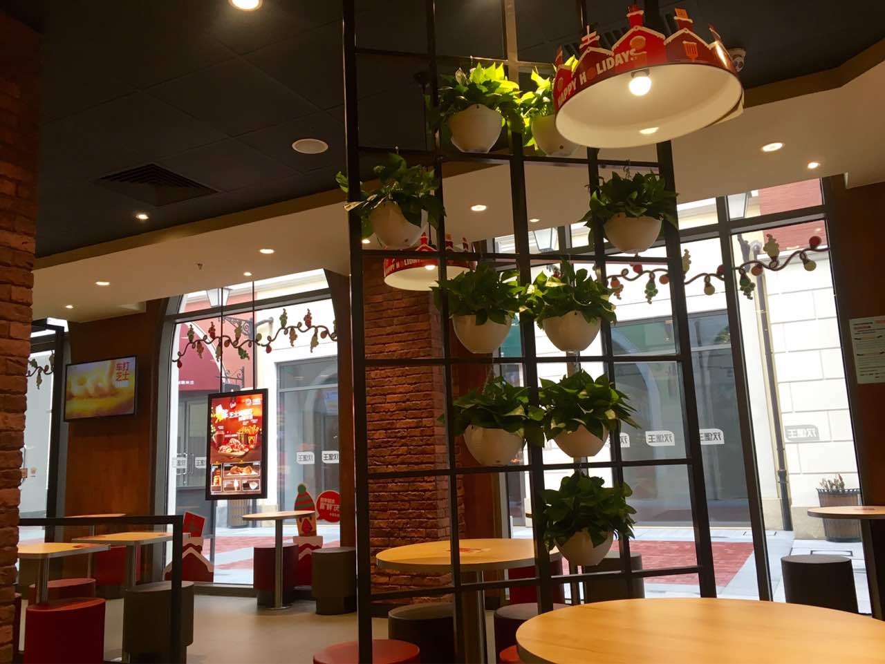 店里的装饰配上独特的建筑街区,显得节日气氛特别浓郁!店里人少,本来这一片人就不多,空空荡荡的没有几家店铺,倒是有很多点外卖的,看到一直有外卖员进进出出!平时在市里也是喜欢吃汉堡王多过肯德基麦当劳,尤其喜欢汉堡王的小吃,洋葱圈、霸王鸡条等,特别好吃!