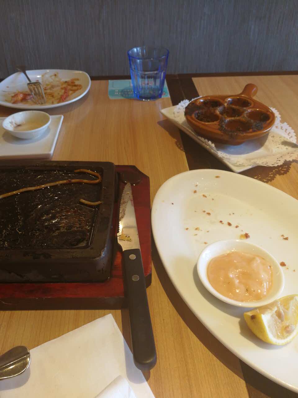 点的西冷牛排,凤尾虾,盐焗蜗牛,香草冰淇淋 全部吃完了 强烈推荐
