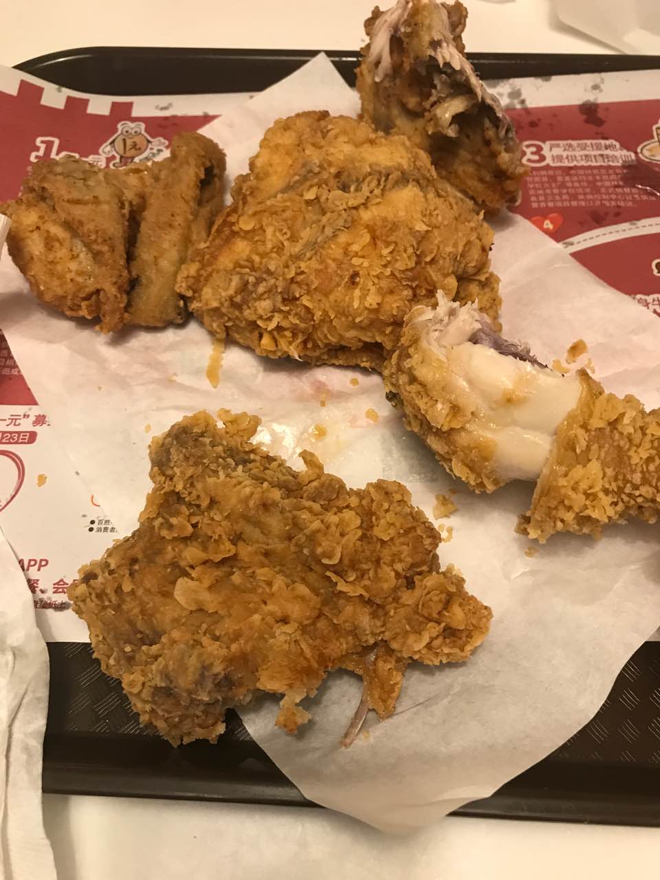 新出的炸鸡桶,可选择辣和不辣自由搭配,很好吃哈
