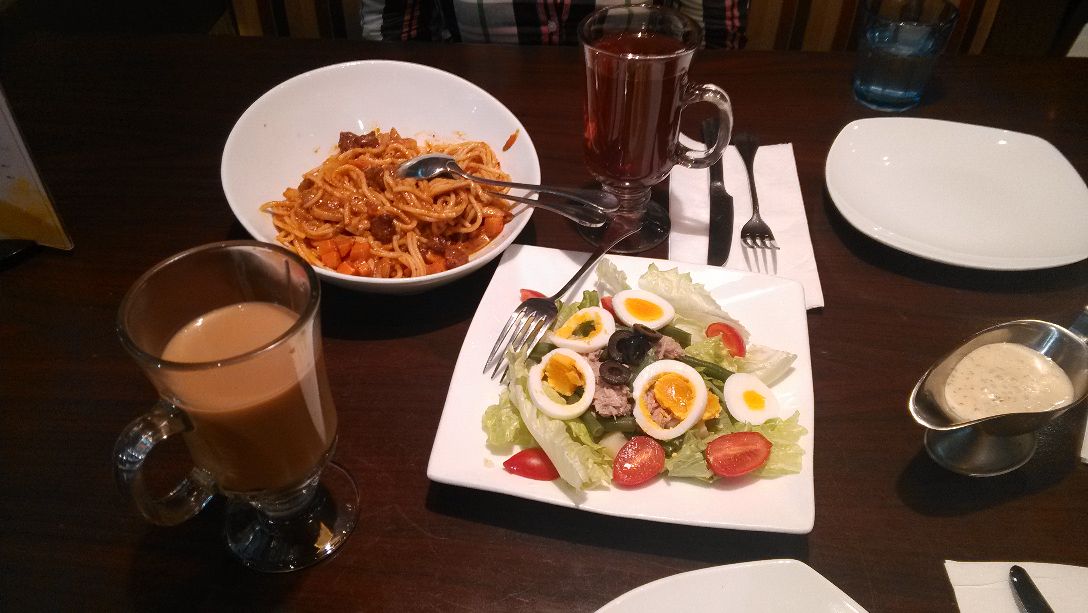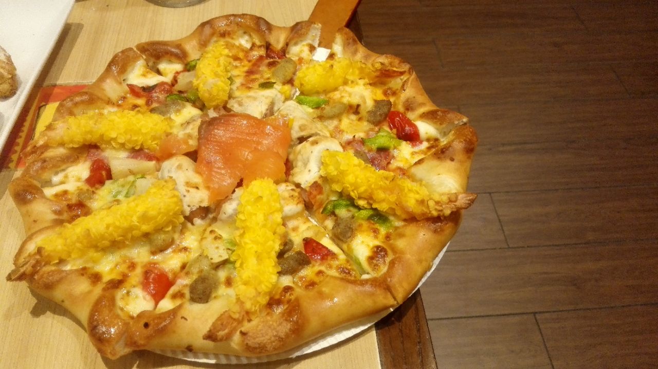 这家在友谊路靠近牡丹江路的地方,连锁的披萨店,披萨点了经典的海陆至尊披萨的芝心版,就是每个小卷边都有芝士夹心的那种,披萨面皮很有韧性,吃起来糯糯的,而且不腻味,饼面上的料很足,除了大虾培根外,还有很多的时蔬;小吃点了特惠拼盘,有凤尾虾、鸡米花、薯卷和鸡翅几个,其中鸡翅最好吃,嫩嫩的而且比较入味,凤尾虾和鸡米花也不错,没有油腻感,另外他家的奶油酥皮汤和提拉米苏等点心也是不错的。