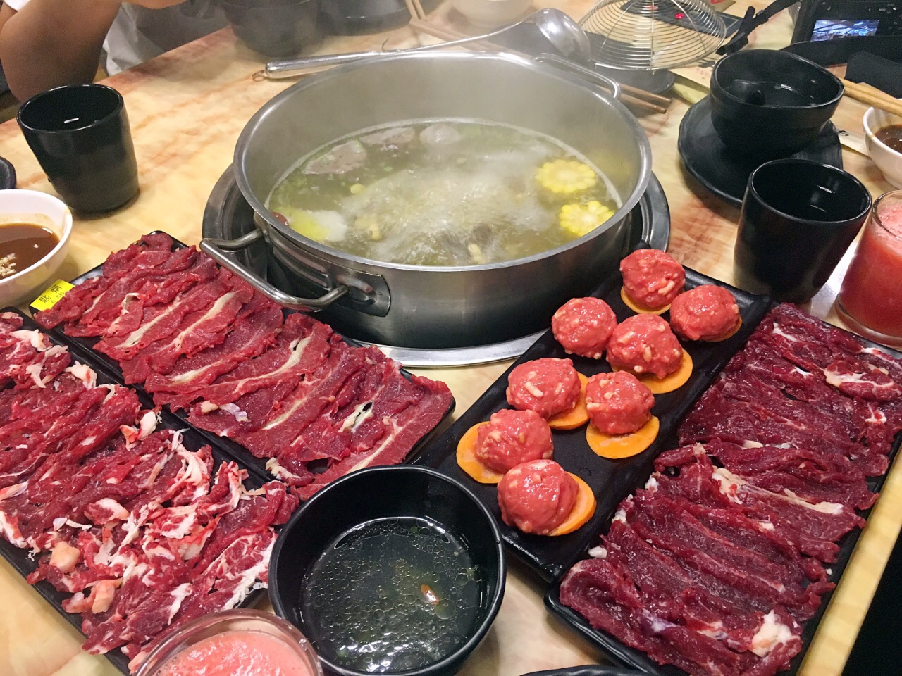招牌锅里面料还挺多的,牛腩、牛肉丸、牛肉饼、萝卜、玉米都挺好吃。 牛肉推荐吊龙和匙炳,锅滚开后烫个小10秒就可以吃了,相~当~嫩~ 他家的炸腐皮也很棒,跟汕头的一样,嗲~ 西瓜汁一扎才28块钱,看着吧台店员鲜榨的,老给力了~ 刚发现他家还出了优惠套餐,以后夜宵来这儿挺好的~~
