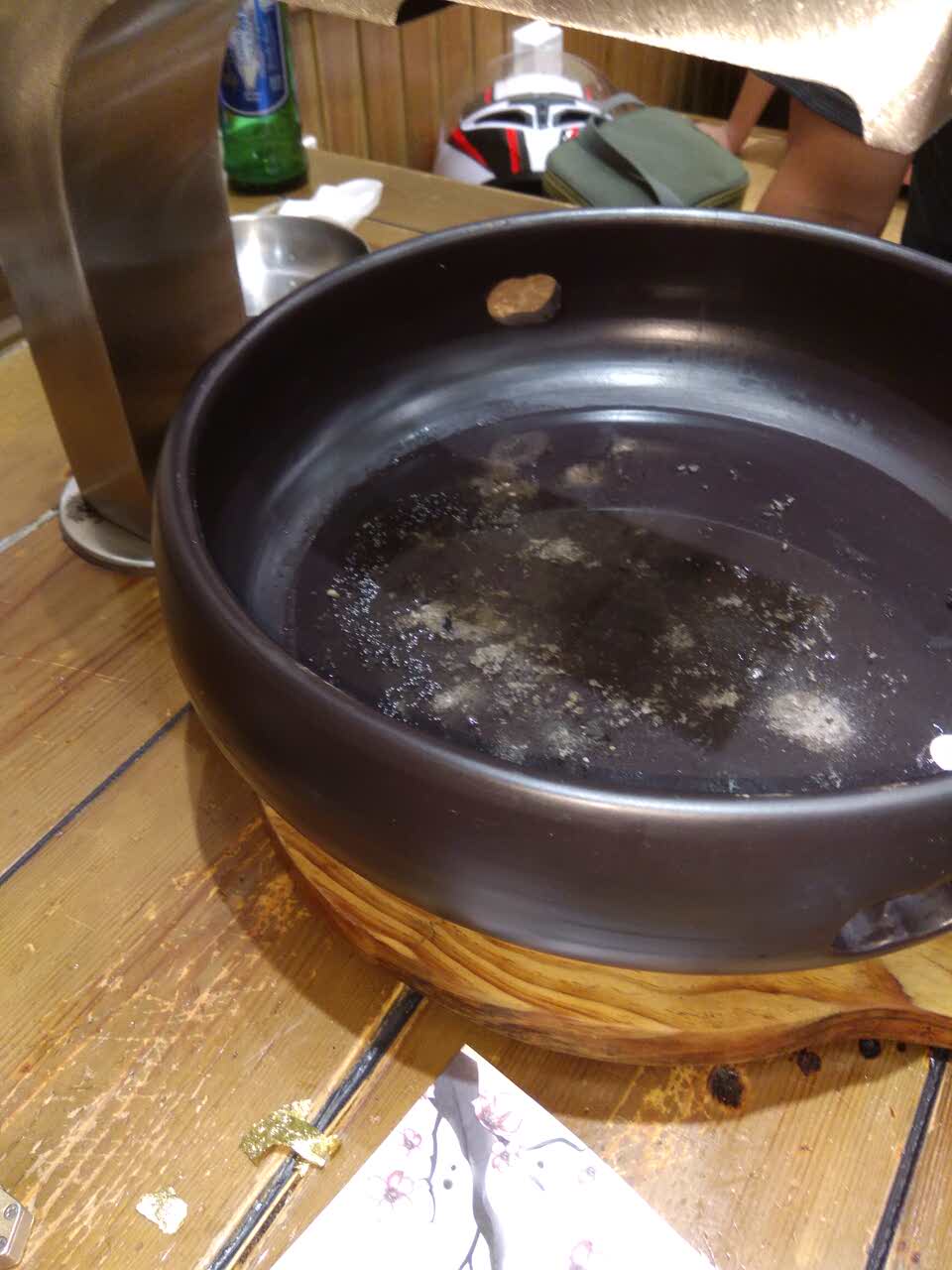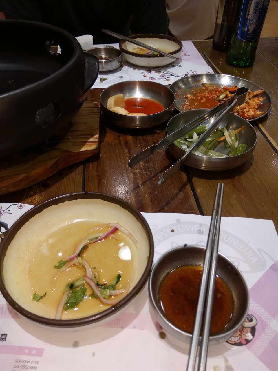 肉片很薄,口感如肥牛片,蘸料挺特殊,味道也不错,上了些小菜,点的鱿鱼清理的很干净
