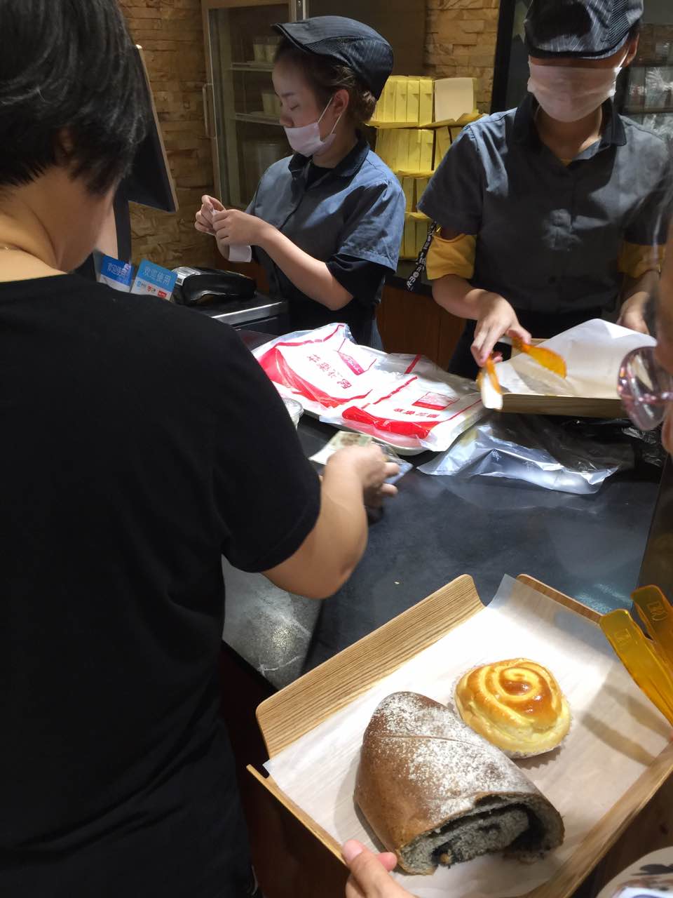 这个面包店很好的一直都在这里买面包的以后继续在这里买面包