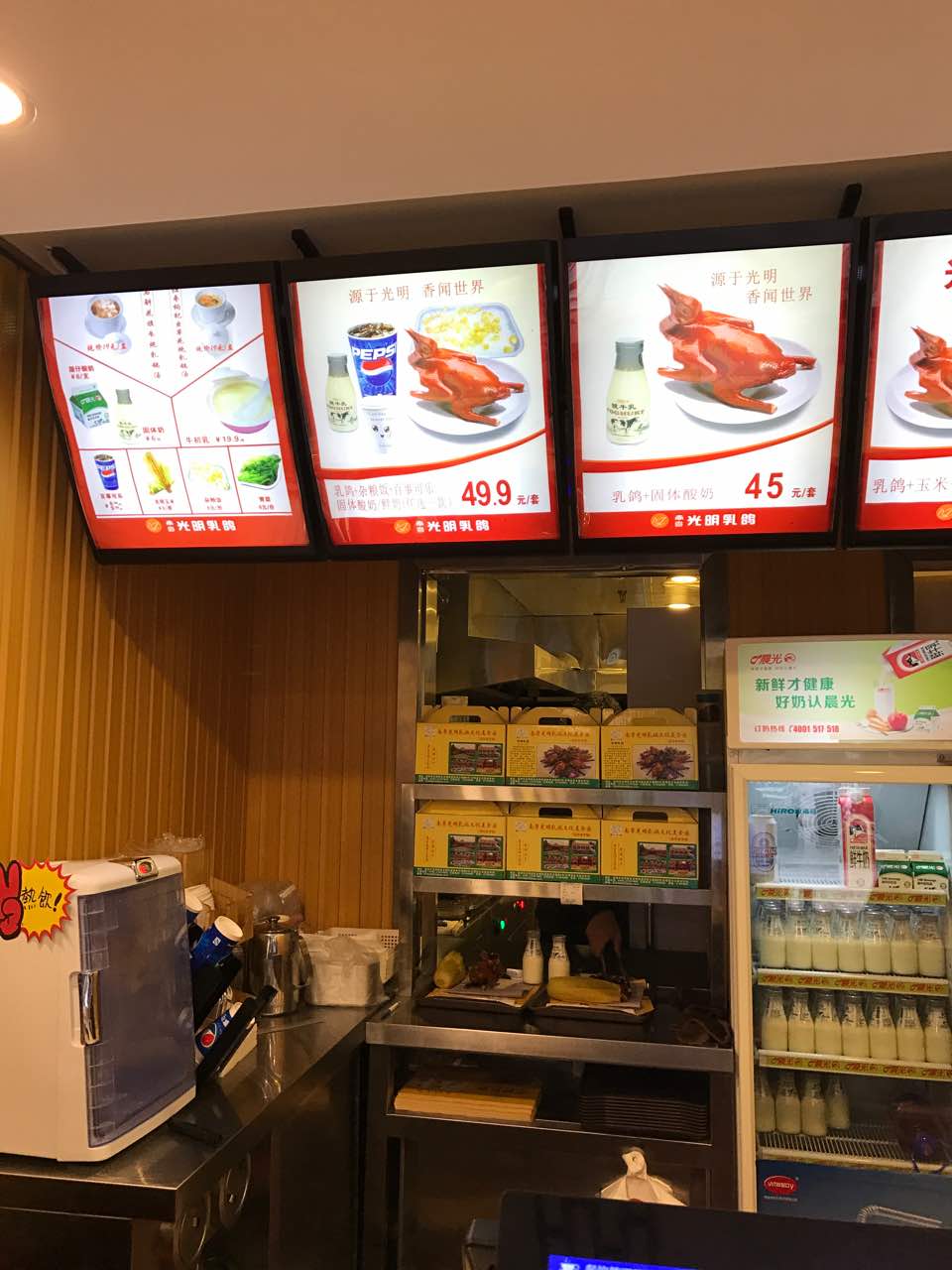 店面干净,人也不多,乳鸽很入味,不用去光明也能吃到光明乳鸽很棒!经常看完电影买只带回去吃。