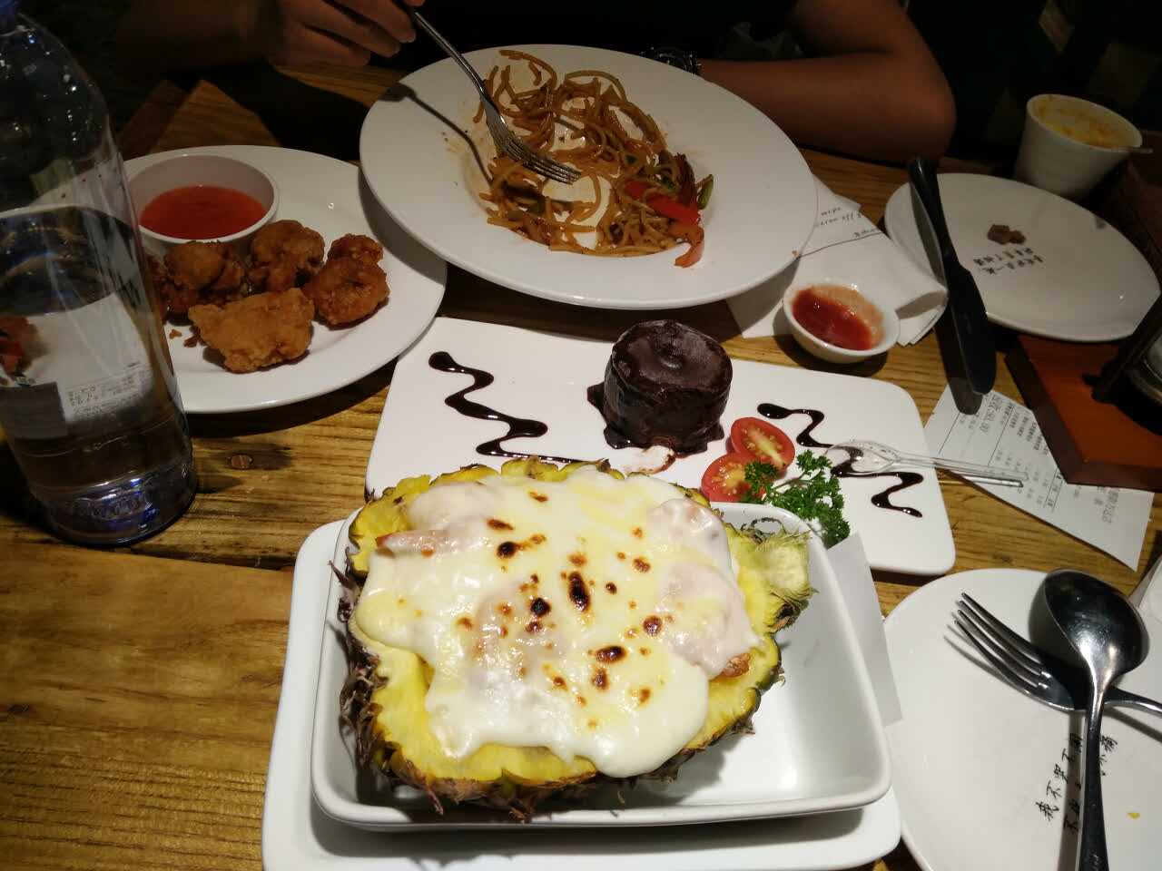 环境还可以,意面的口味也很棒,菠萝饭口感酸甜。就是要自己动手拉凳子有一点重哦!