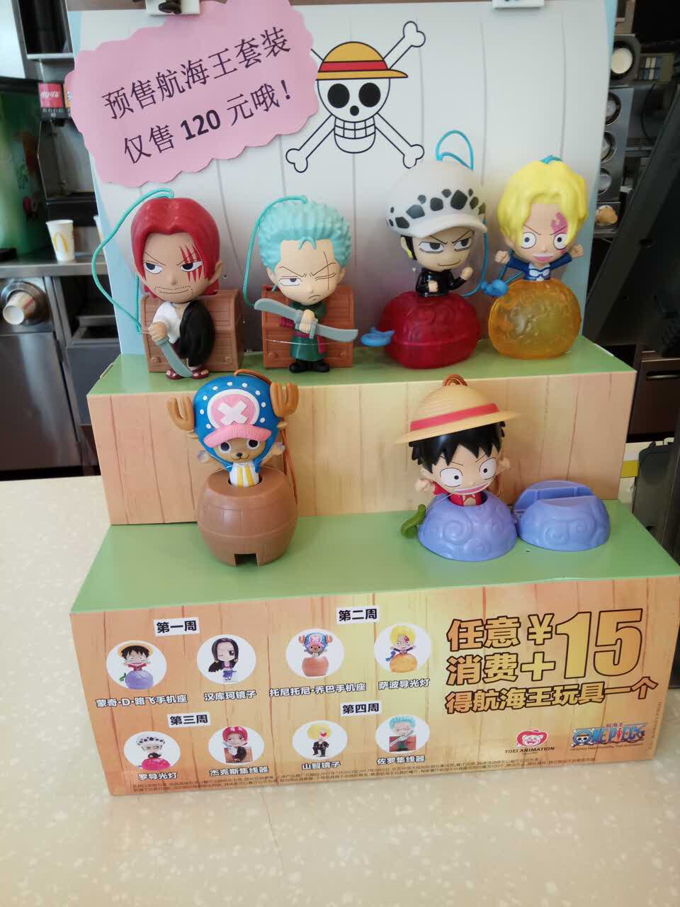 麦当劳活动超给力,免费续两次大薯。今年的海贼王系列出炉了,买买买