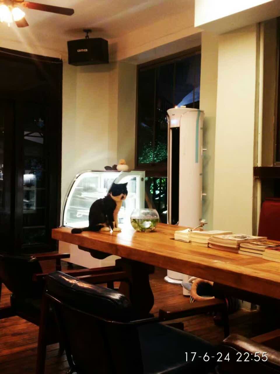 店面的入口在曾厝垵的月光岩花园别墅酒店内,因为住在那里,所以每天都路过,看到可爱的猫咪们,店主是个爱猫的讲究情调的文艺小女生,甜品都是用的好材料,饮料啤酒也都很不错,每只猫猫都有不同的性格,那个白白的看上去最可爱的主子,其实很有个性,只喜欢人家摸头,它那肥嘟嘟的样子开始还以为它是孕妇,哈哈哈哈,其实人家是丰满帅哥一枚,其它的猫咪都可以抱,最可爱的是加菲的黑猫警长,,最亲人。店主聊起猫咪,疼爱之情溢于言表,对啦,还是小美女噢!推荐去曾厝垵的朋友们去抱抱主子,给小主子们请个安,顺便吃个甜品,看看美女,哈哈