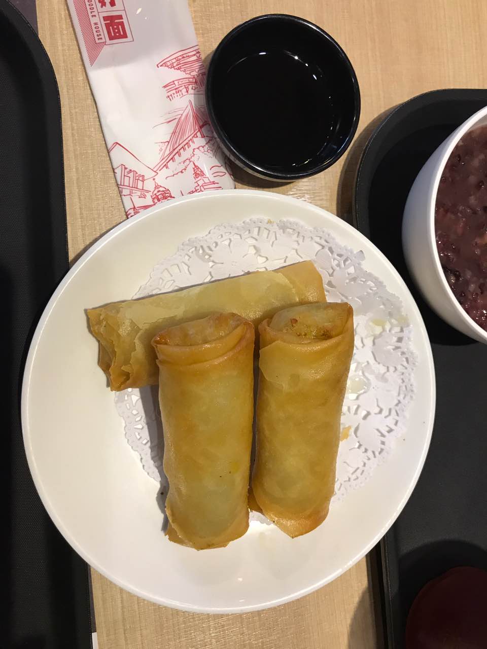 7号线地铁旁边的“家有好面”,环境优雅,黄鱼面、八宝粥、春卷口味不错……