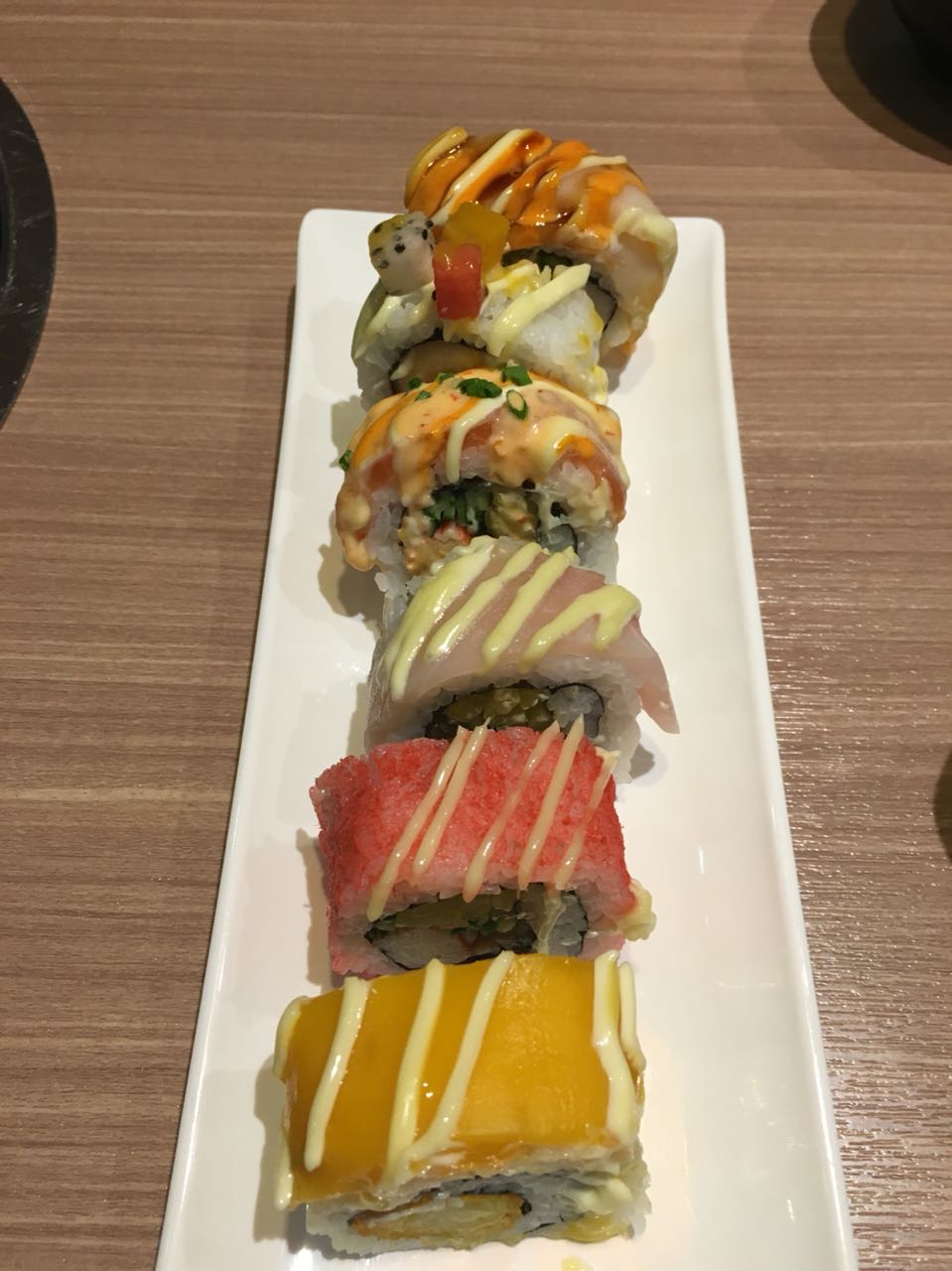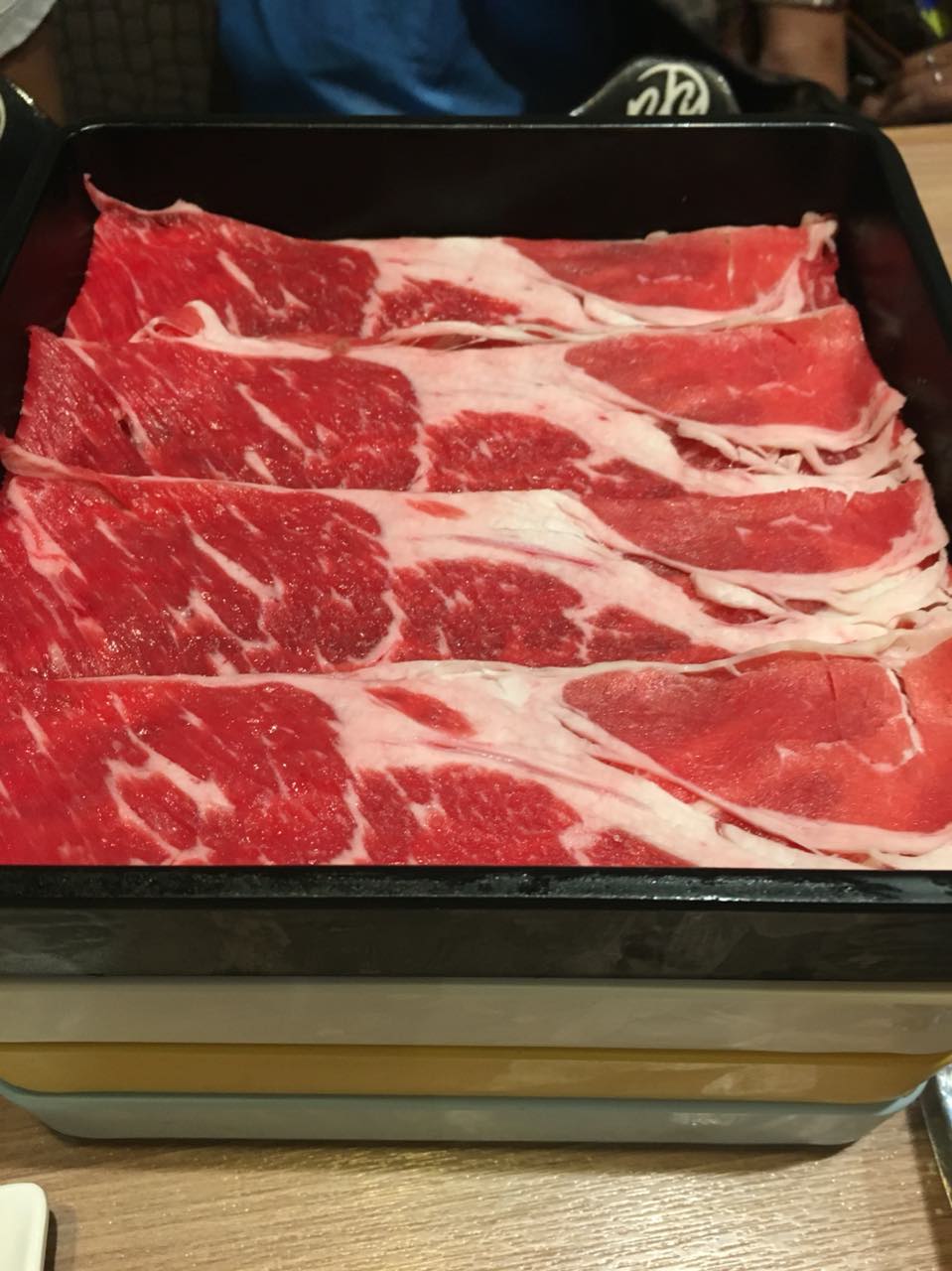 店比较小,感觉没虹悦城大,好吃的都是推出来的,雪花牛肉和寿喜锅不错……